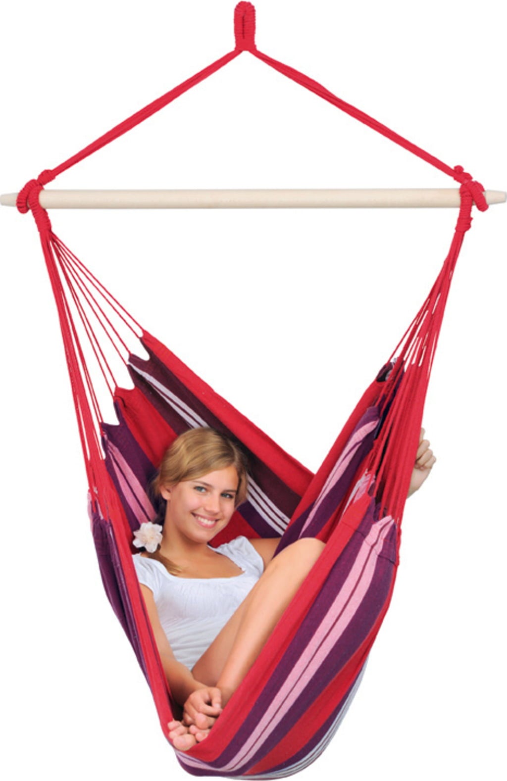 Immergiti nel puro relax con la sedia sospesa Havanna di Amazonas! Questa spaziosa e comoda sedia sospesa invita a sognare e riposarsi.