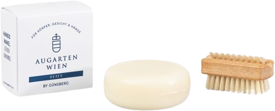 Questo delizioso set, curato con amore per ogni dettaglio, porta un tocco di eleganza in qualsiasi bagno. La saponetta è accompagnata da un raffinato piattino realizzato a mano in porcellana dipinta, appartenente alla celebre collezione Augarten "Rosa di Vienna". La fragranza della saponetta, creata da Günsberg, profuma con il nuovo aroma Augarten, mentre la piccola spazzolina per unghie completa armoniosamente il set.