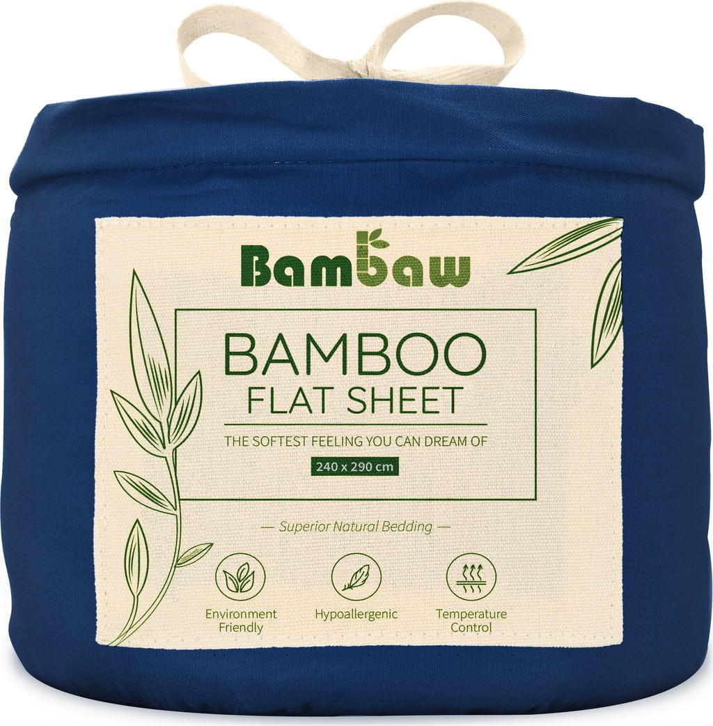 Bambaw Cozy Lenzuolo in Bambù - 240 x 290 cm, Blue Navy