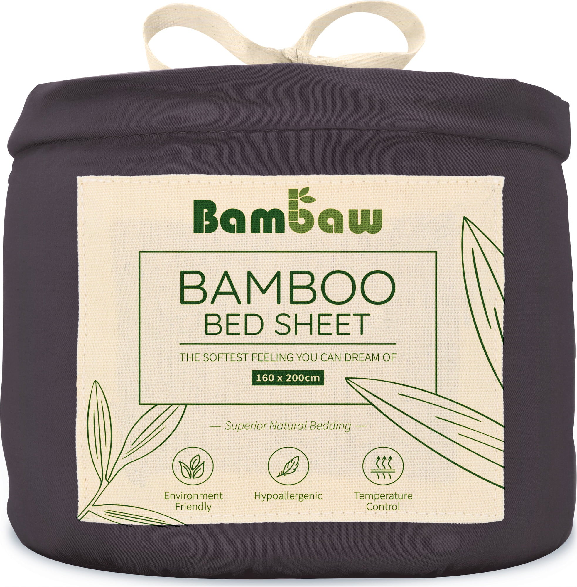 Bambaw Cozy Lenzuolo in Bambù con Angoli 160 x 200 cm, carbone