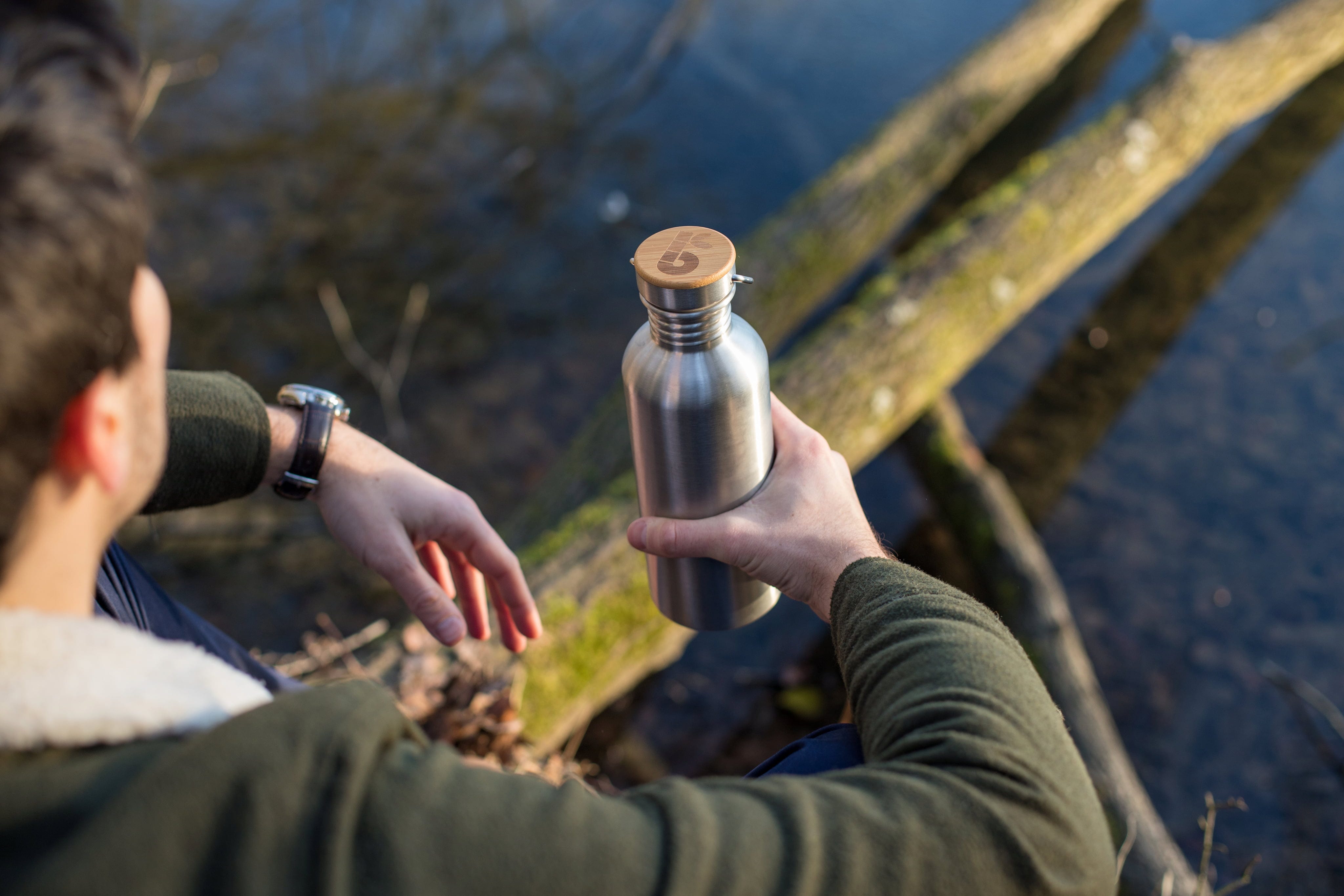 Questa borraccia è perfetta per la tua vita quotidiana! Infatti, è ideale sia per lo sport, in ufficio, a scuola o per le escursioni. È realizzata in acciaio inossidabile, ha un tappo a vite in bambù a prova di perdite e presenta un design semplice e classico. La bottiglia è priva di sostanze chimiche nocive e può essere facilmente pulita con una spazzola specifica dopo l'uso.