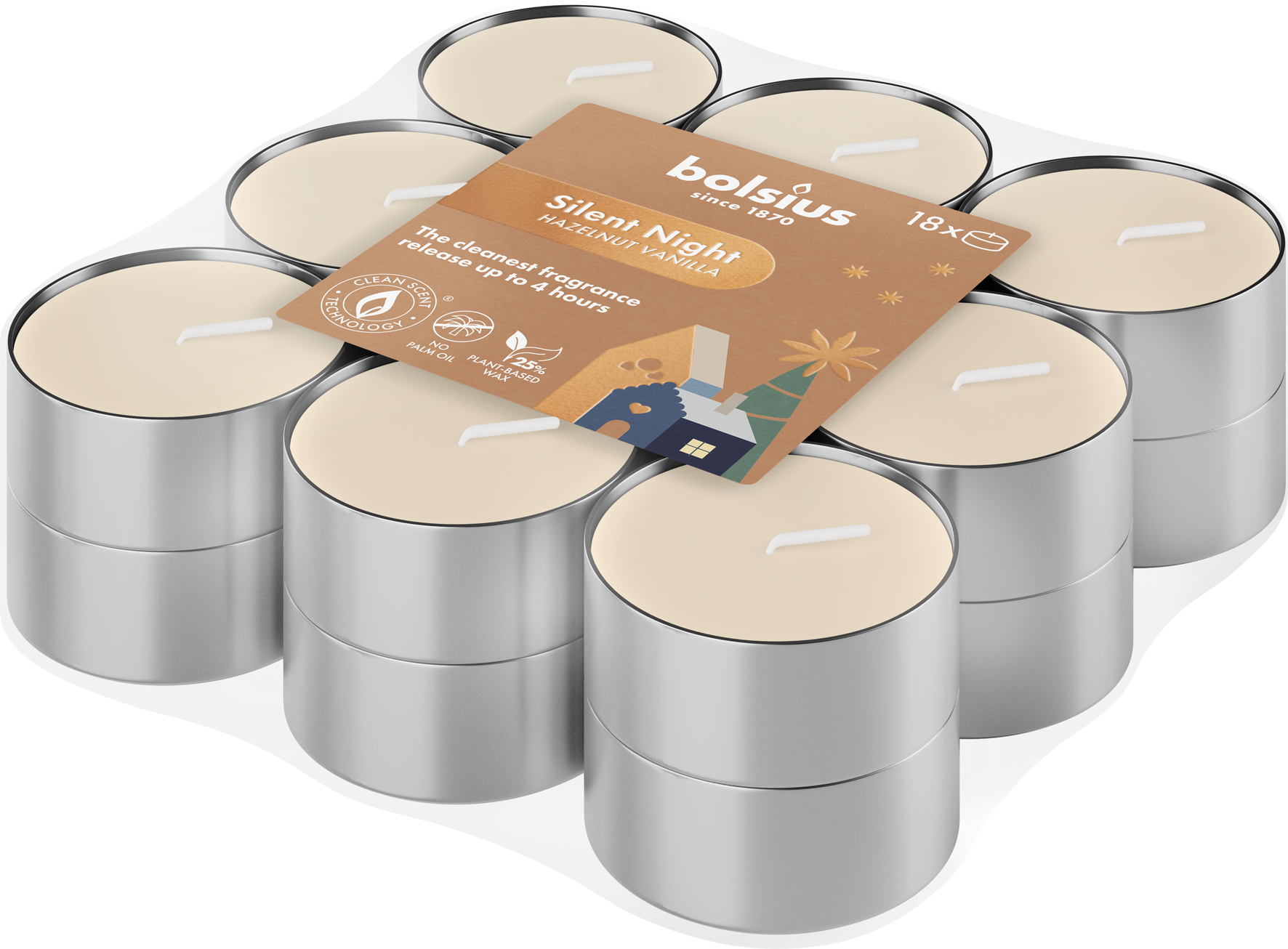 bolsius True Glow - Lumini Profumati Silent Night, Candeline 4h / confezione da 18
