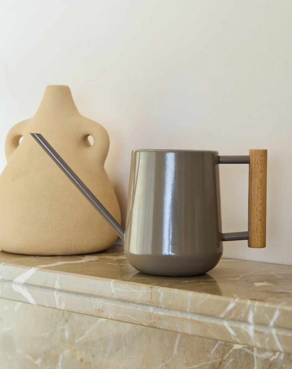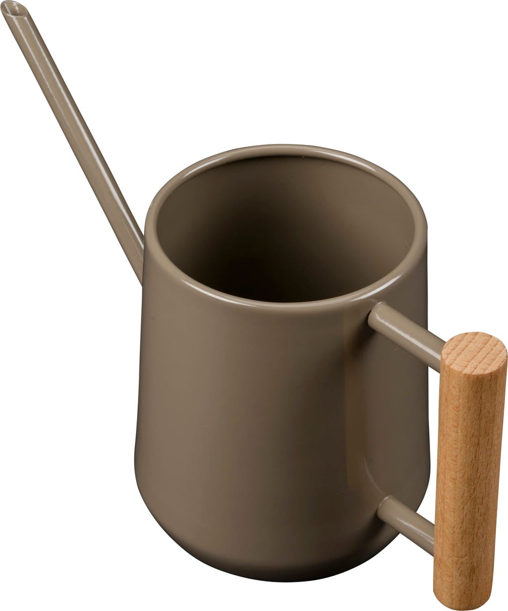 Con questo annaffiatoio da interni porterai stile e funzionalità nella tua casa. Il manico in legno offre una sensazione calda e naturale, mentre il metallo verniciato a polvere ne garantisce la durevolezza. Ideale per prenderti cura delle tue piante d'appartamento.