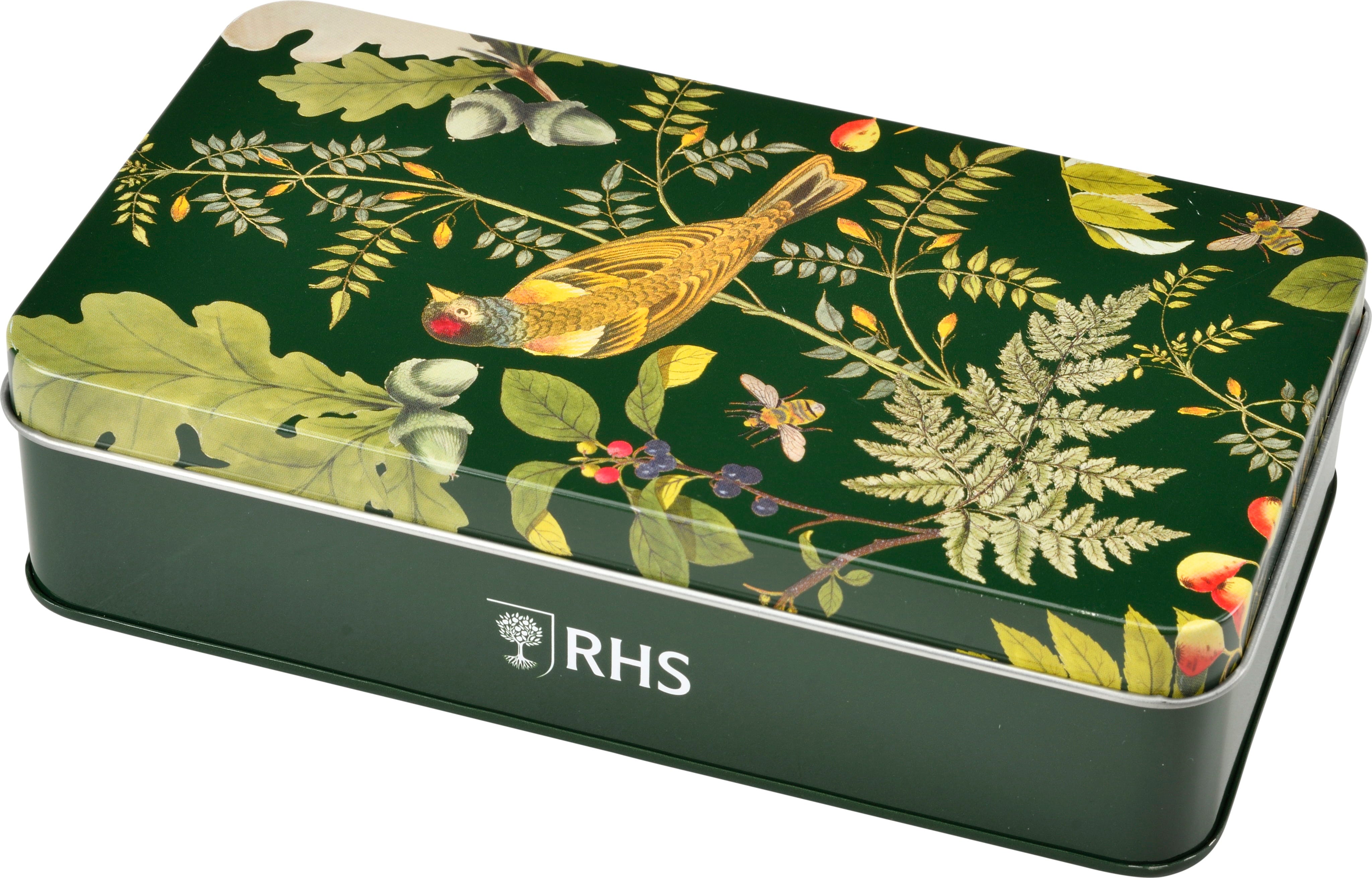 L'elegante design Woodland Wonders, con motivi storici provenienti dagli archivi della RHS, porta la tranquillità del bosco direttamente a casa tua. Un'idea regalo originale o un raffinato accessorio per chi ama seminare e coltivare con stile.