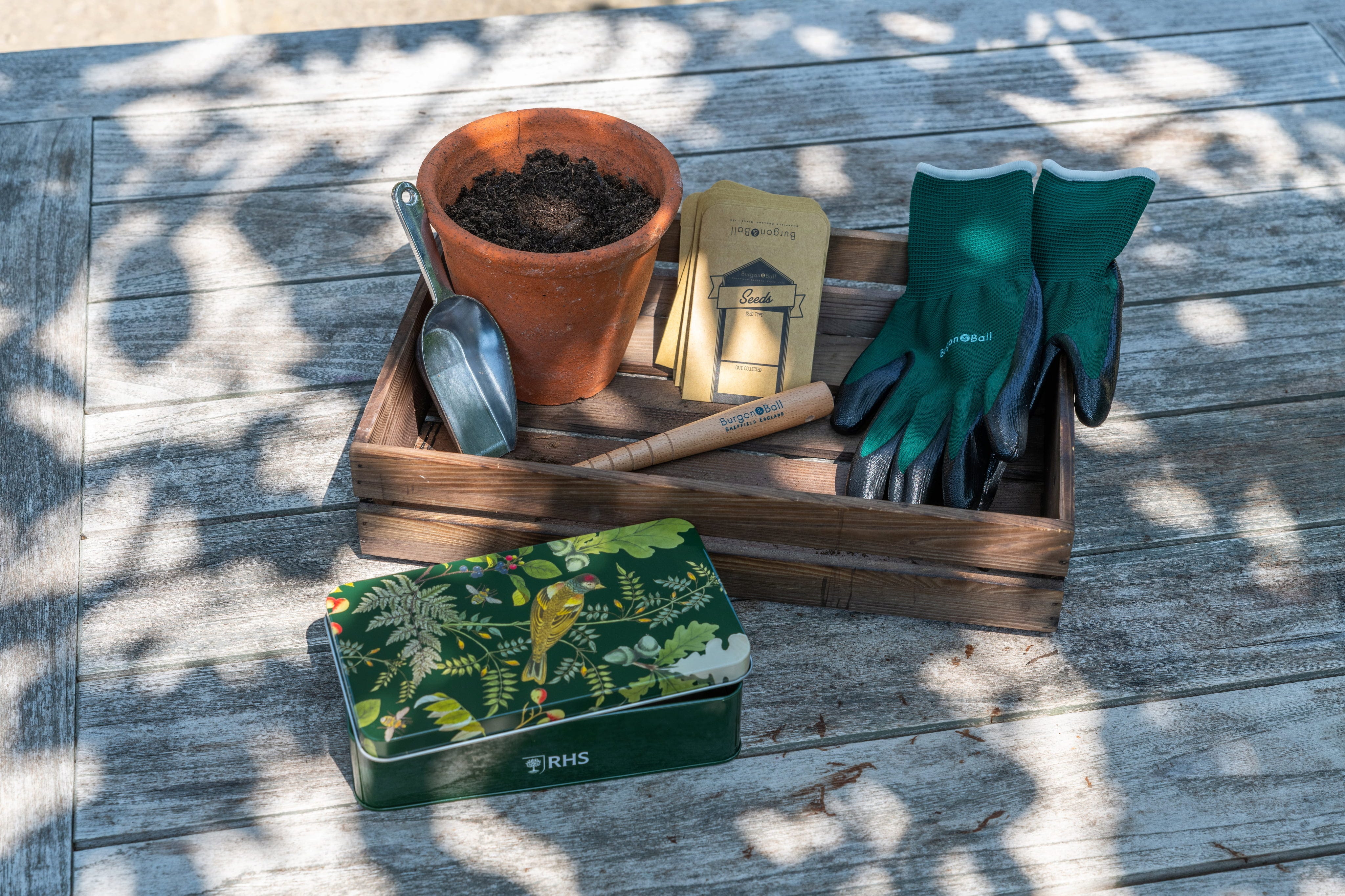 Inizia al meglio la stagione del giardinaggio con il curato set per semina di Burgon & Ball. All'interno della splendida scatola in metallo decorata trovi tutto ciò che serve per la coltivazione delle giovani piantine: una paletta in alluminio di precisione, un piantatoio in legno per semi più grandi e robuste bustine di carta per conservare il tuo assortimento di semi. Il set è completato da guanti elasticizzati con rivestimento protettivo in nitrile.