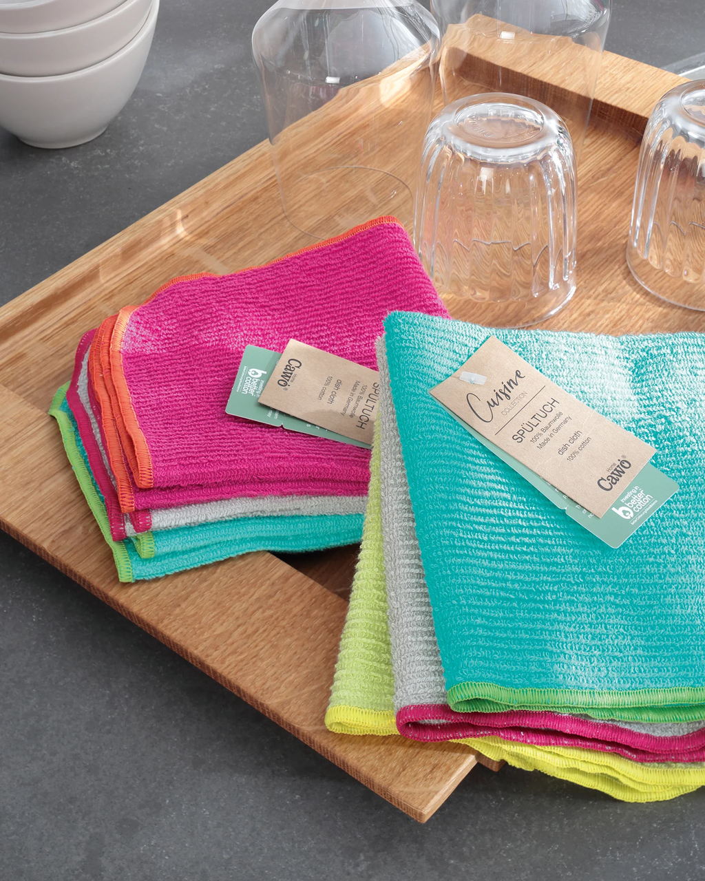 Con i panni da cucina Cawö avrai sempre un valido alleato per le pulizie! Questi pratici panni universali sono utilissimi non solo in cucina, ma anche in tutta la casa. Realizzati in Germania in puro cotone, sono durevoli, resistenti e anche sostenibili. Insomma, dureranno nel tempo. E poi, grazie ai loro colori freschi, diventano anche un bel dettaglio per la tua casa. Rendi la tua routine più facile con questi panni super affidabili!
