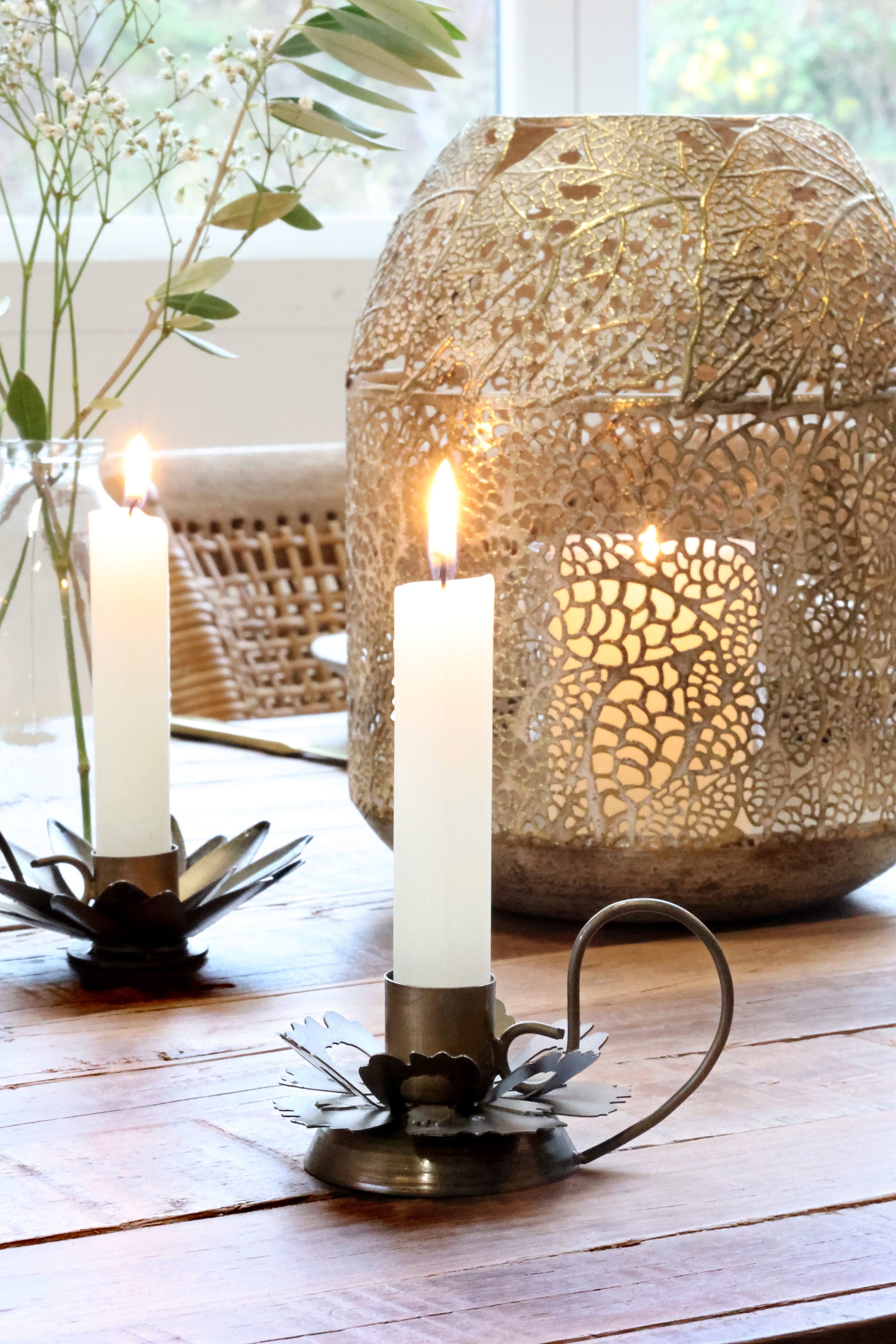 Il piccolo portacandela aggiunge un elegante tocco decorativo a ogni ambiente. Ideale per mini candele affusolate, crea una luce d'atmosfera e dona alla tua casa un delicato fascino vintage.