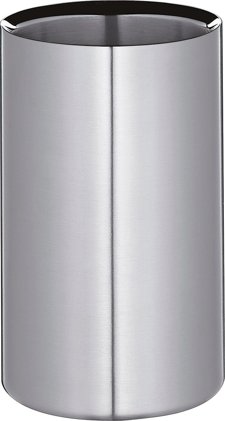 Il refrigeratore per vino CLASSICO di cilio è l'essenza del design funzionale. Rinuncia volutamente a scomodi accumulatori di freddo o al ghiaccio: l'isolamento fisico dell'acciaio inox di alta qualità è sufficiente per mantenere a lungo fresca una bottiglia già alla giusta temperatura. Il design cilindrico classico è dimensionato generosamente per accogliere in sicurezza tutte le comuni bottiglie di vino e spumante.