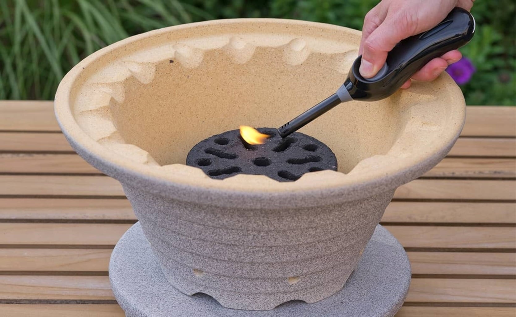 - Accensione rapida e semplice, ad esempio con accendino potente o cannello da cucina.