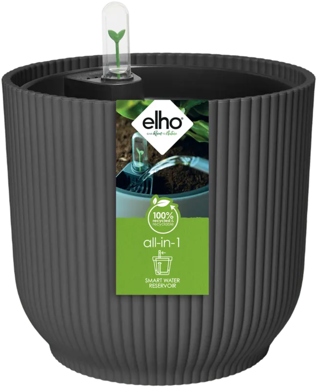 elho all-in-1 vibes round 25 cm + Inserto per Autoirrigazione, Antacite