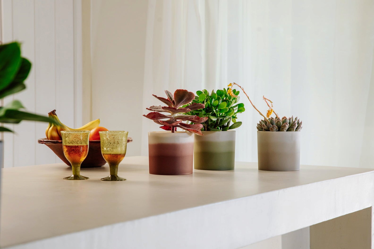Questo vaso in plastica riciclata conquista per il suo aspetto naturale con un delicato effetto sfumato e per la sua qualità robusta. Dona un tocco speciale agli ambienti interni e valorizza le tue piante d’appartamento in modo unico.
