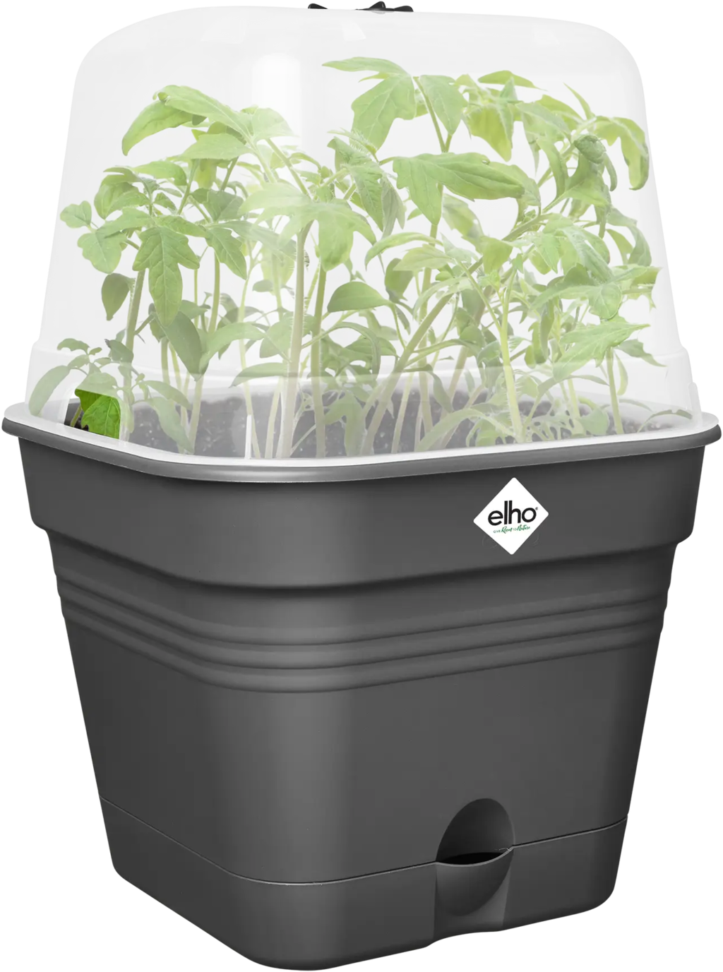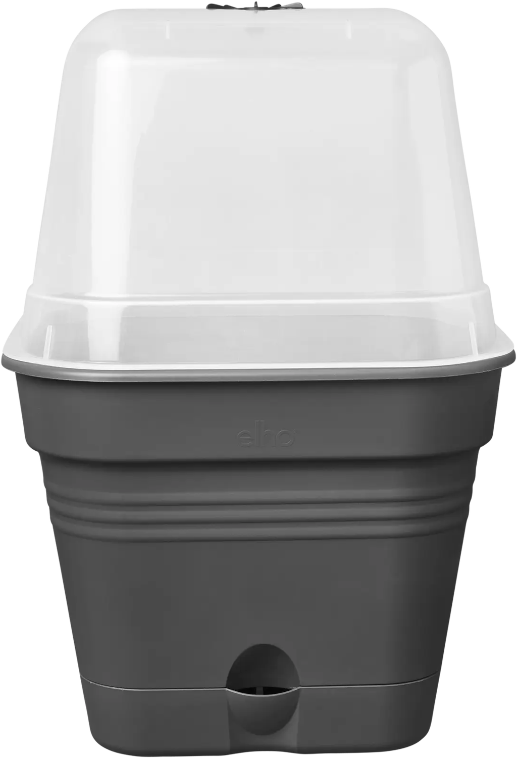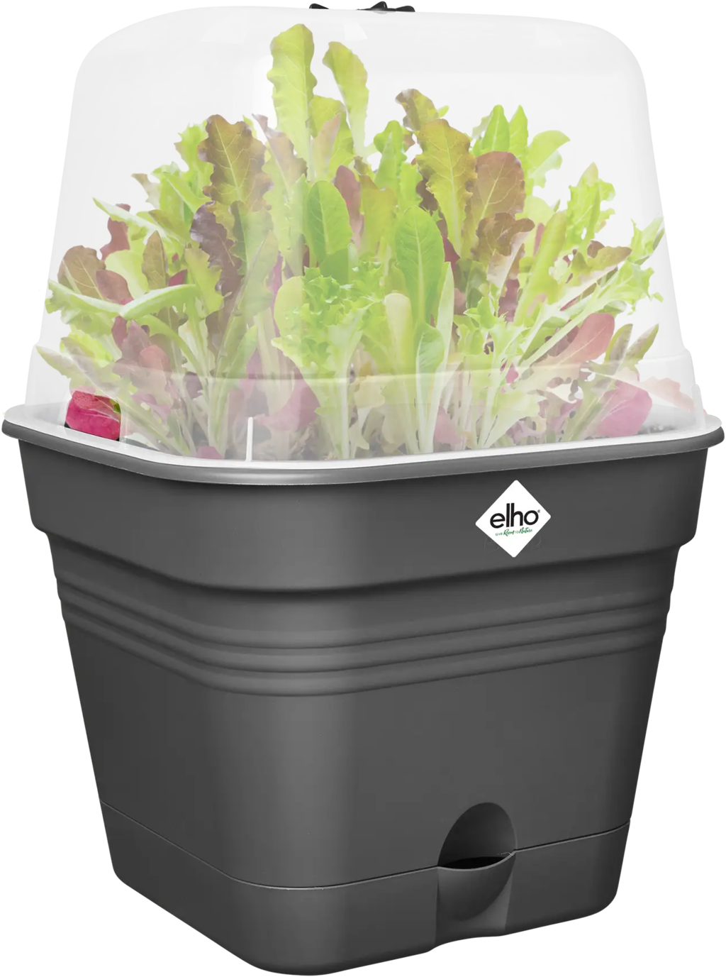 Con questo vaso quadrato in plastica riciclata, coltivare frutta, verdura ed erbe aromatiche è molto semplice, perché offre alle piante le condizioni di crescita ottimali. Grazie al serbatoio dell'acqua integrato, le piante hanno sempre abbastanza acqua disponibile e non devi preoccuparti di annaffiare tutto il tempo. La copertura inclusa protegge le tue piante dalla luce solare diretta, insetti e uccelli, garantendo al contempo un ottimo clima per la crescita.