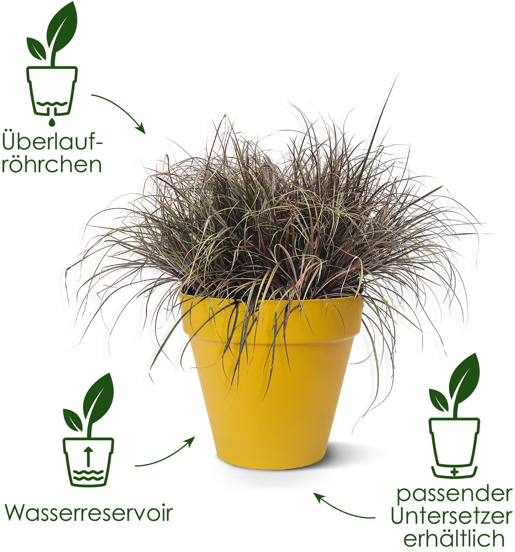 Con i suoi colori vivaci, questo vaso non solo è meraviglioso, ma è anche progettato in modo intelligente. Il serbatoio dell'acqua incorporato assicura che le tue piante abbiano sempre abbastanza acqua. Questo modello possiede rotelle integrate, che lo rendono estremamente facile da spostare. Le rotelle non sono visibili dall'esterno!