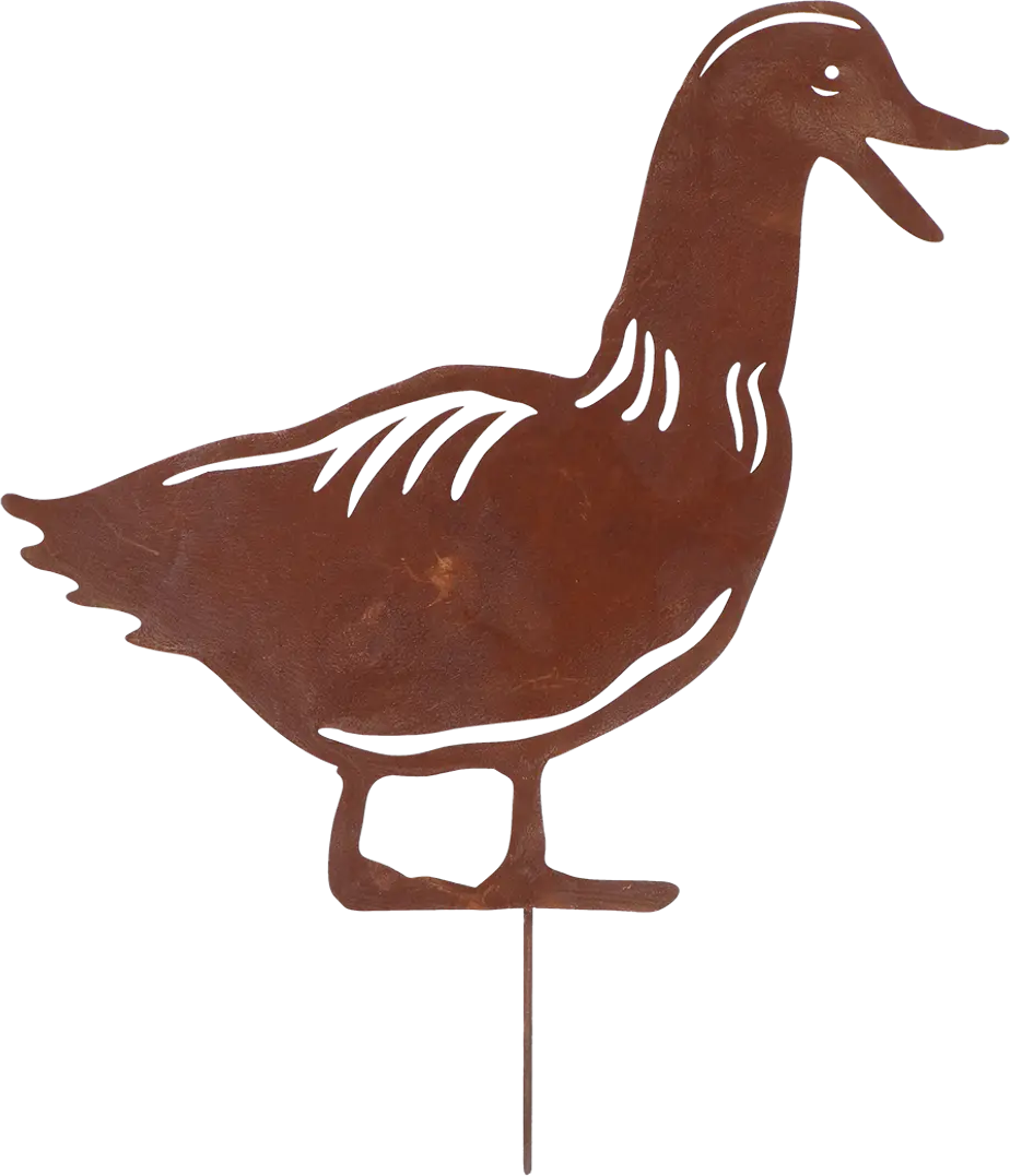 Una decorazione da giardino finemente tagliata al laser a forma di anatra, capace di aggiungere un tocco giocoso e poetico alle aiuole e di diventare un simpatico elemento decorativo anche nei vasi.