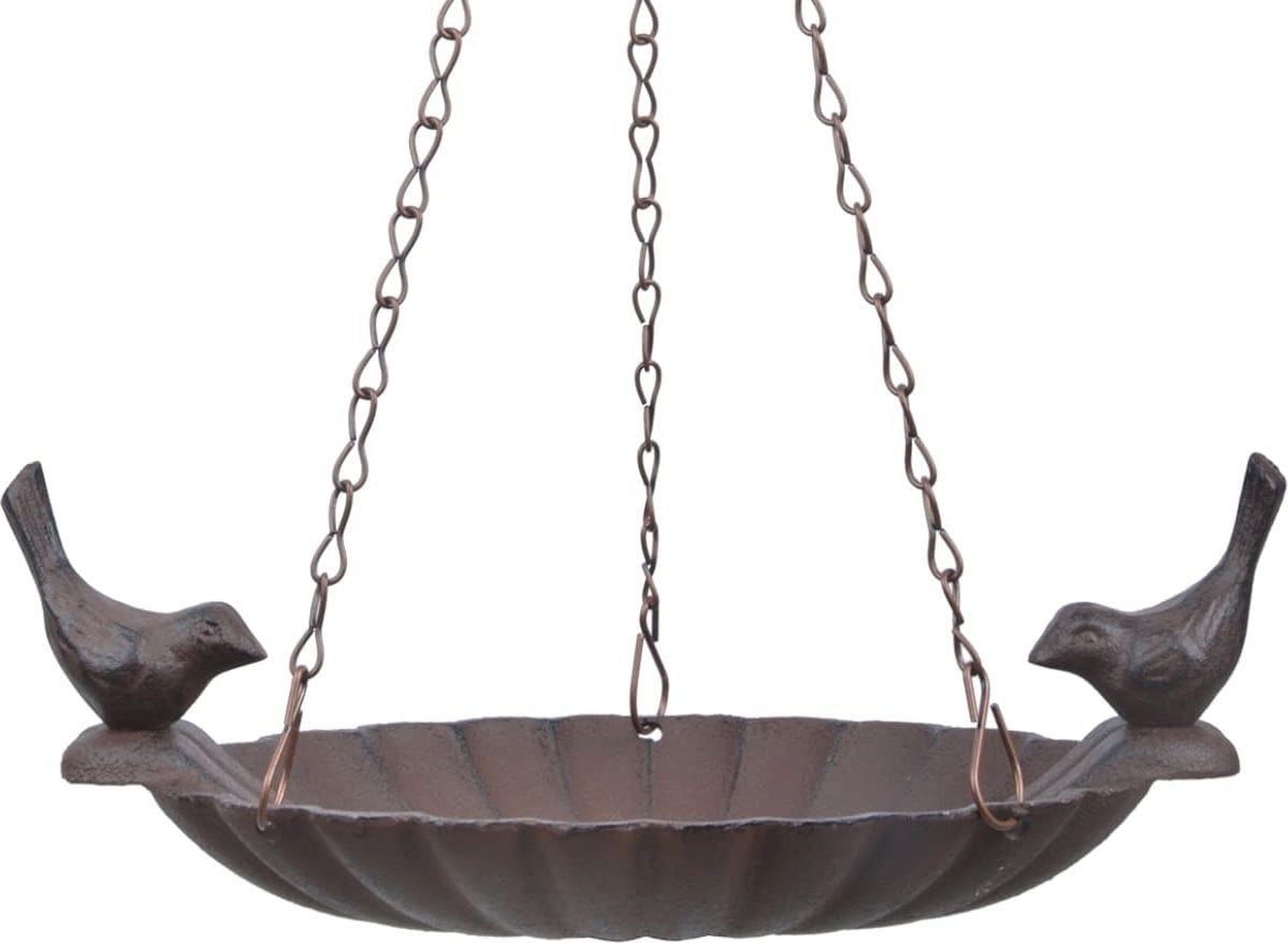 La splendida ciotola per uccelli in robusta ghisa offre ai piccoli visitatori un luogo confortevole dove fermarsi a bere. Grazie alla catena con gancio inclusa, può essere appesa con facilità a un albero, a una trave o al soffitto. È importante scegliere una posizione tranquilla e difficilmente raggiungibile dai gatti. Quando è riempita d'acqua, la ciotola diventa non solo una pratica fonte di ristoro, ma anche un piacevole spazio per il bagno degli uccellini.