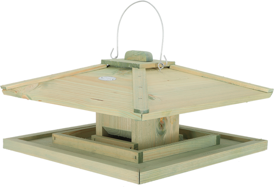 Il pratico contenitore centrale offre agli uccelli cibo a sufficienza senza doverlo riempire nuovamente ogni giorno. Il bordo rialzato non serve solo come posto dove gli uccelli possono sedersi, ma fornisce anche uno scomparto per l'alimentazione separato. Ciò significa che gli uccelli non si siedono direttamente nel cibo e si evitano malattie causate dalla contaminazione.