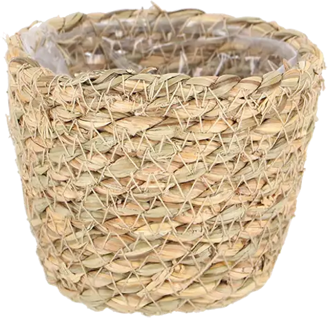 Un vaso a cesto in alghe marine intrecciate che dona un fascino naturale e discreto, valorizzando un'atmosfera accogliente negli ambienti interni. La pellicola protettiva interna in plastica evita sporco e macchie, rendendolo ideale per le piante da interno.
