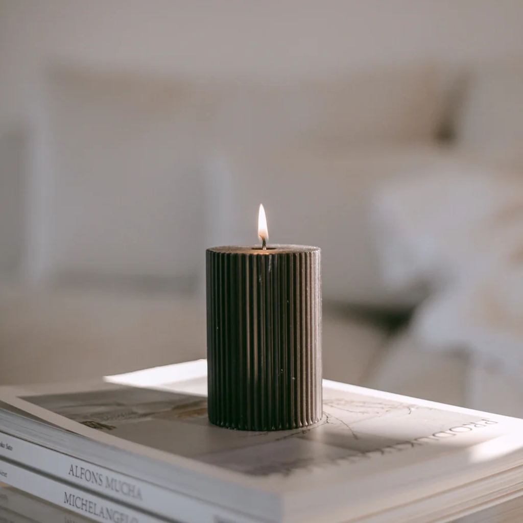 Eulenschnitt Candela Cilindrica con Scanalature - Piccola, Nero