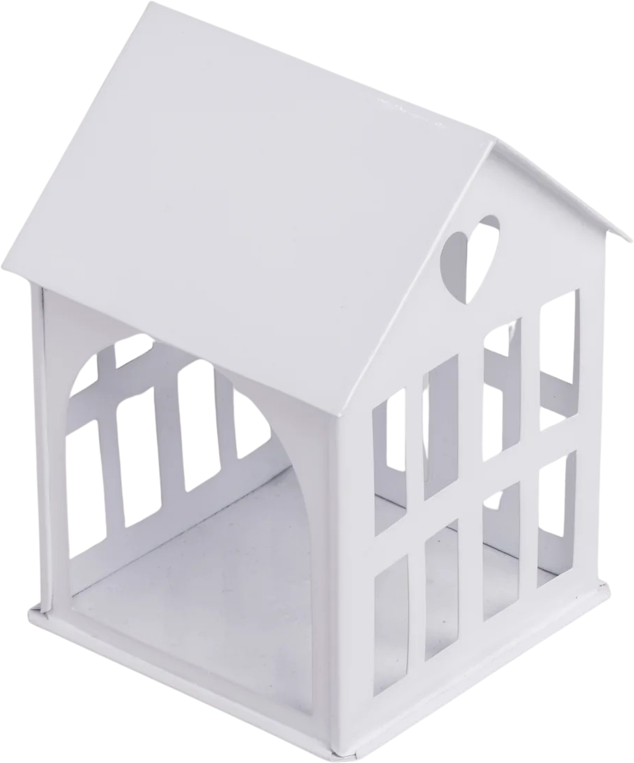 La piccola casetta in metallo bianco dona a ogni ambiente un tocco elegante e senza tempo, offrendo infinite possibilità di decorazione personalizzata. Può essere valorizzata con una delicata ghirlanda luminosa, trasformata in suggestivo punto focale con una candela o lasciata semplicemente al naturale: in ogni versione cattura subito l’attenzione.