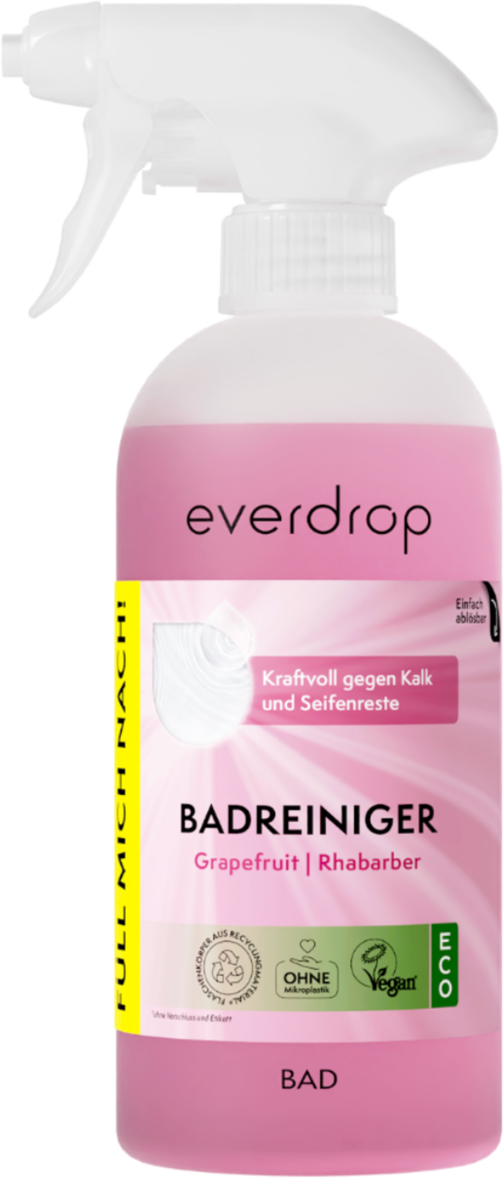 Il gradevole profumo di menta piperita e rosmarino rende la pulizia un piacere. Ma non è tutto: puoi riutilizzare il flacone e riempirlo con le polveri di ricarica everdrop. In questo modo puoi migliorare il tuo impatto ambientale senza dover rinunciare a una pulizia efficace.