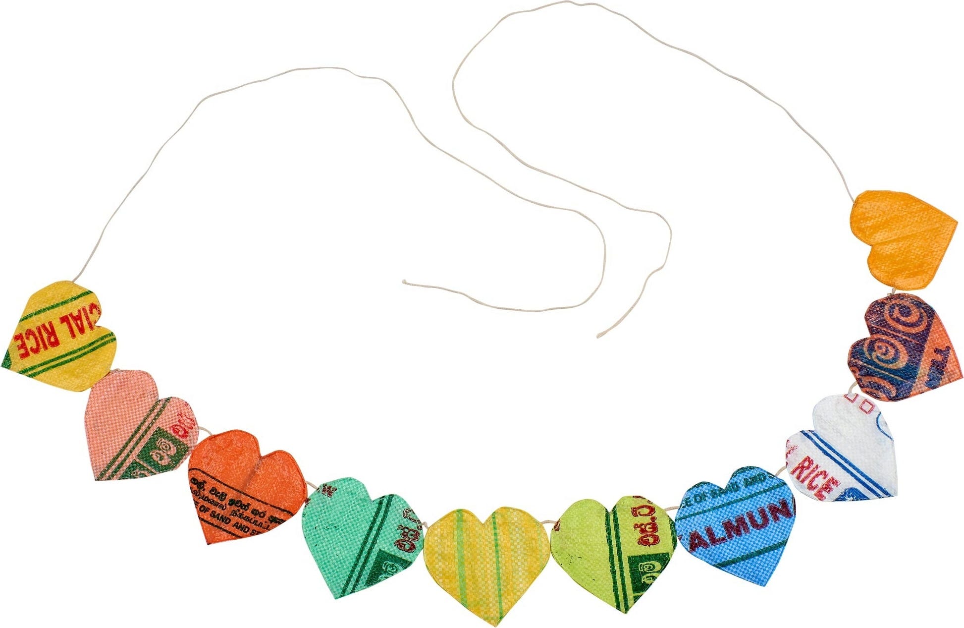 Trasforma il tuo spazio esterno in un luogo pieno di allegria e scegli una vera lavorazione artigianale dal carattere autentico. Questa ghirlanda unica crea subito un’atmosfera festosa con i suoi colori vivaci, perfetta per la prossima festa in giardino, e grazie al robusto materiale riciclato resiste senza problemi anche a un leggero acquazzone. Ognuna delle dieci bandierine a forma di cuore racconta una storia tutta sua: sono realizzate a mano in Sri Lanka a partire da sacchi di riso usati, rendendo ogni ghirlanda un pezzo unico e irripetibile.