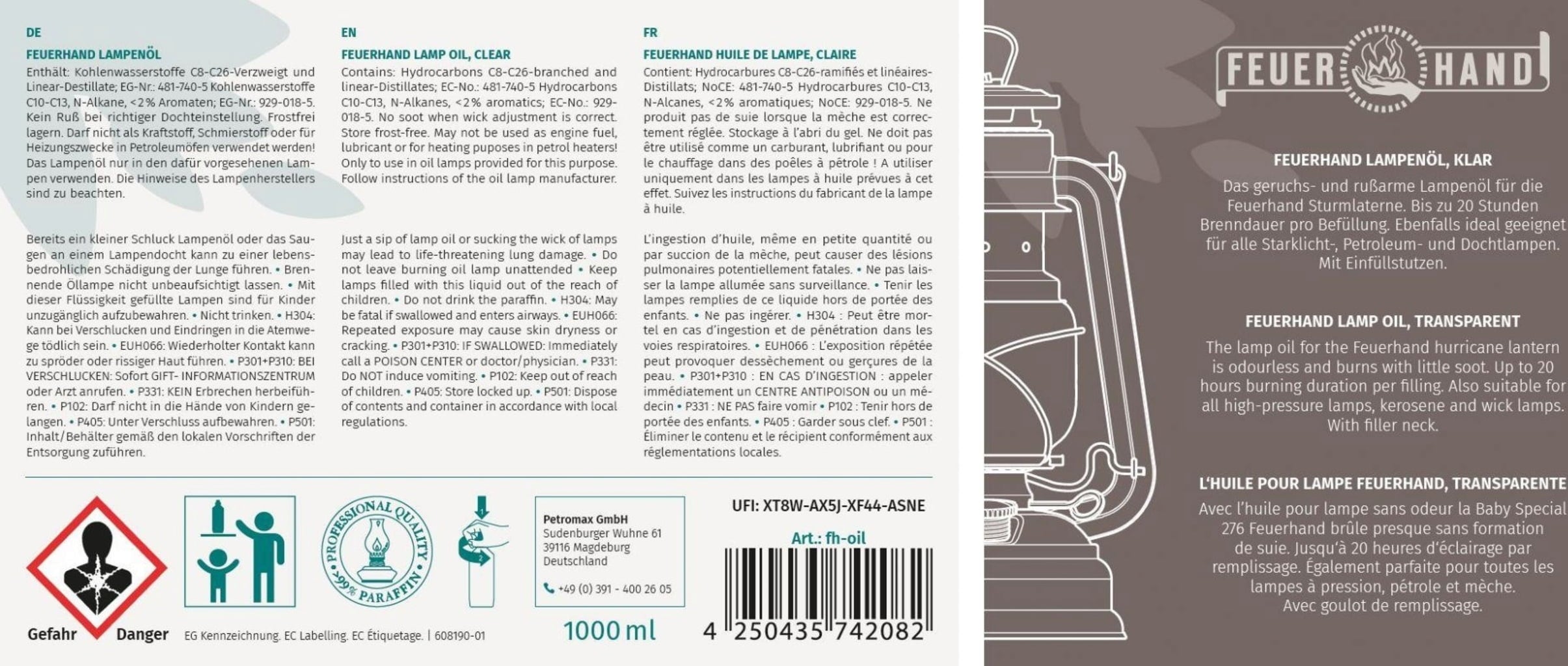 - Contenuto: 1 L di olio per lanterne Feuerhand.