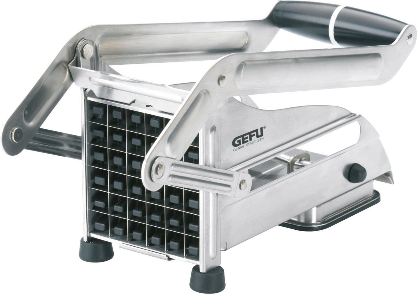 Crea snack e contorni perfettamente uniformi: con il Tagliabastoncini CUTTO porti direttamente a casa tua il trend del fatto in casa! Inserisci patate o verdure, abbassa la solida leva e le lame affilate in acciaio formano 36 bastoncini regolari da 12 x 12 mm. L'espulsore integrato spinge automaticamente i bastoncini puliti attraverso la griglia affilata.