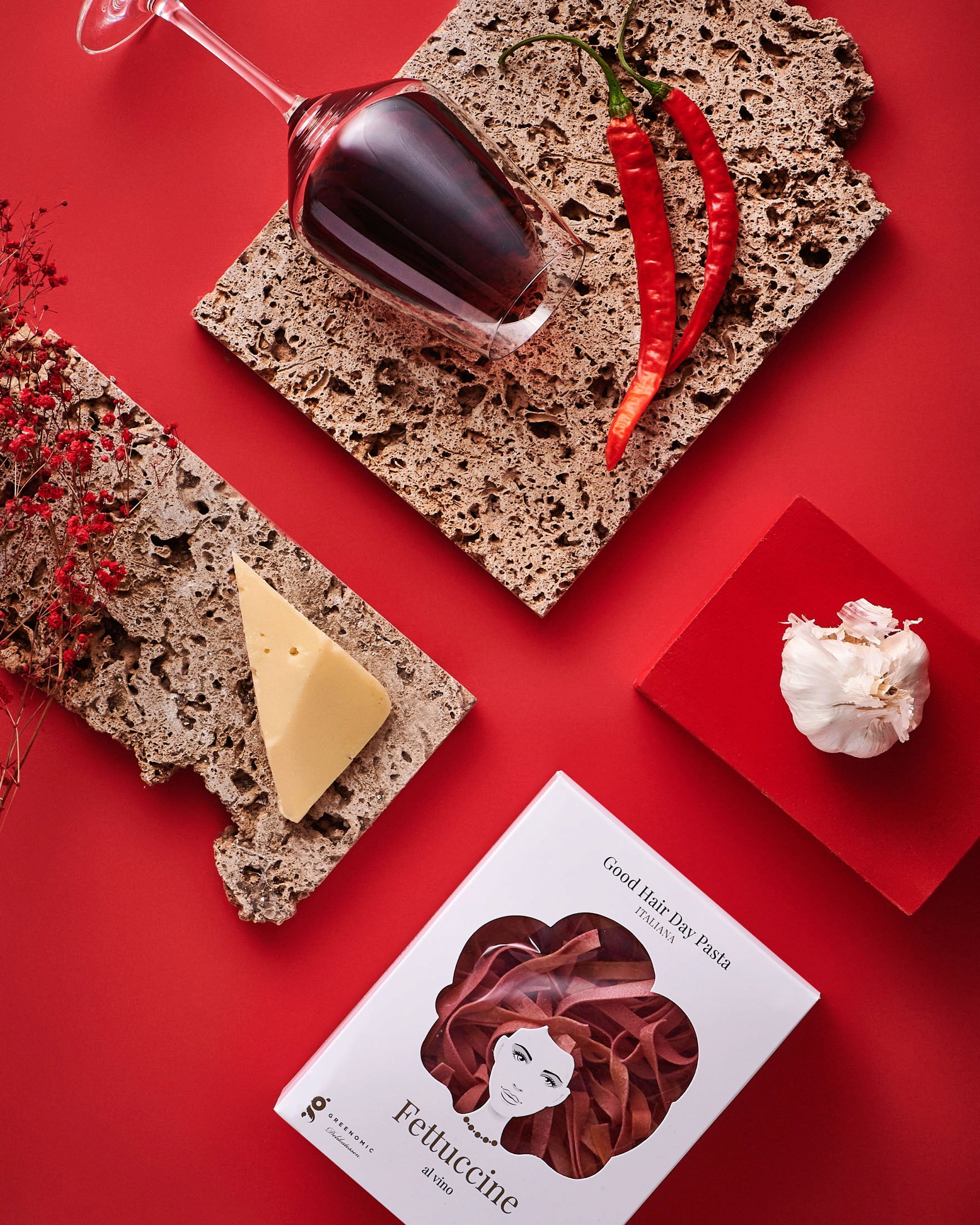 La superficie ruvida della pasta trattiene al meglio il condimento garantendo un'esperienza di gusto ad alti livelli. Le fettuccine al vino, con il loro bellissimo colore rosa, si possono semplicemente gustare al burro con una generosa spolverata di parmigiano grattugiato.