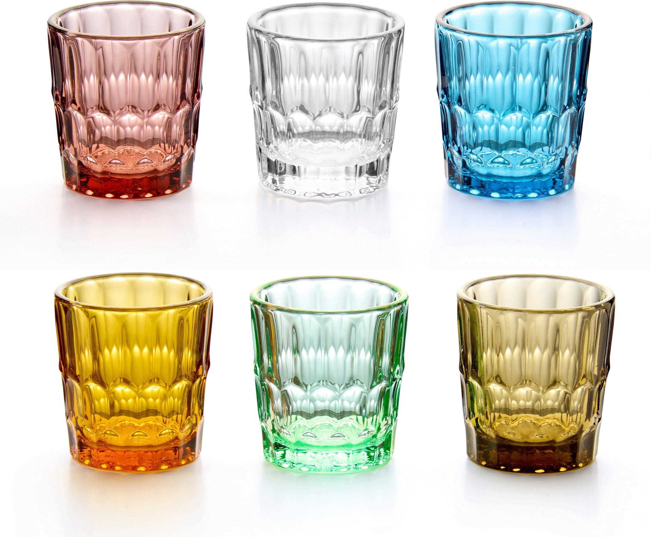 Porta colore alla tua prossima festa! Questo set di sei bicchieri da shot realizzati a mano conquista con la sua struttura distintiva e le splendide tonalità diverse. Perfetti per un digestivo dopo cena o per un espresso veloce, questi piccoli oggetti sono un vero elemento decorativo su ogni tavola.