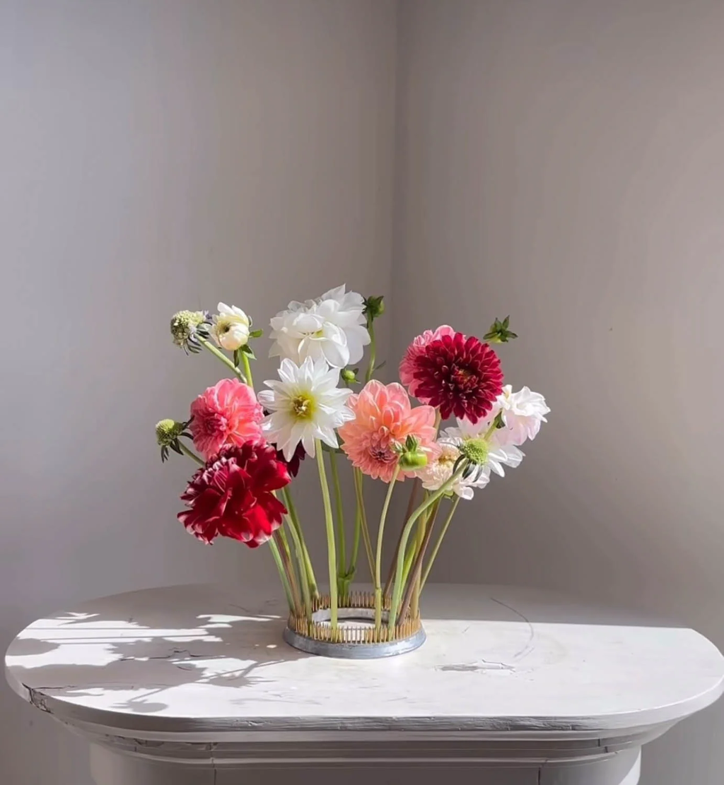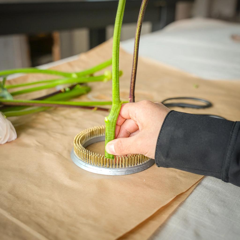 Crea eleganti composizioni Ikebana con il supporto Kenzan Ring: uno strumento affidabile per un'arte floreale creativa e stabile. La forma rotonda e le punte in rame resistente garantiscono un posizionamento preciso e ispirano composizioni sia minimaliste che artistiche.