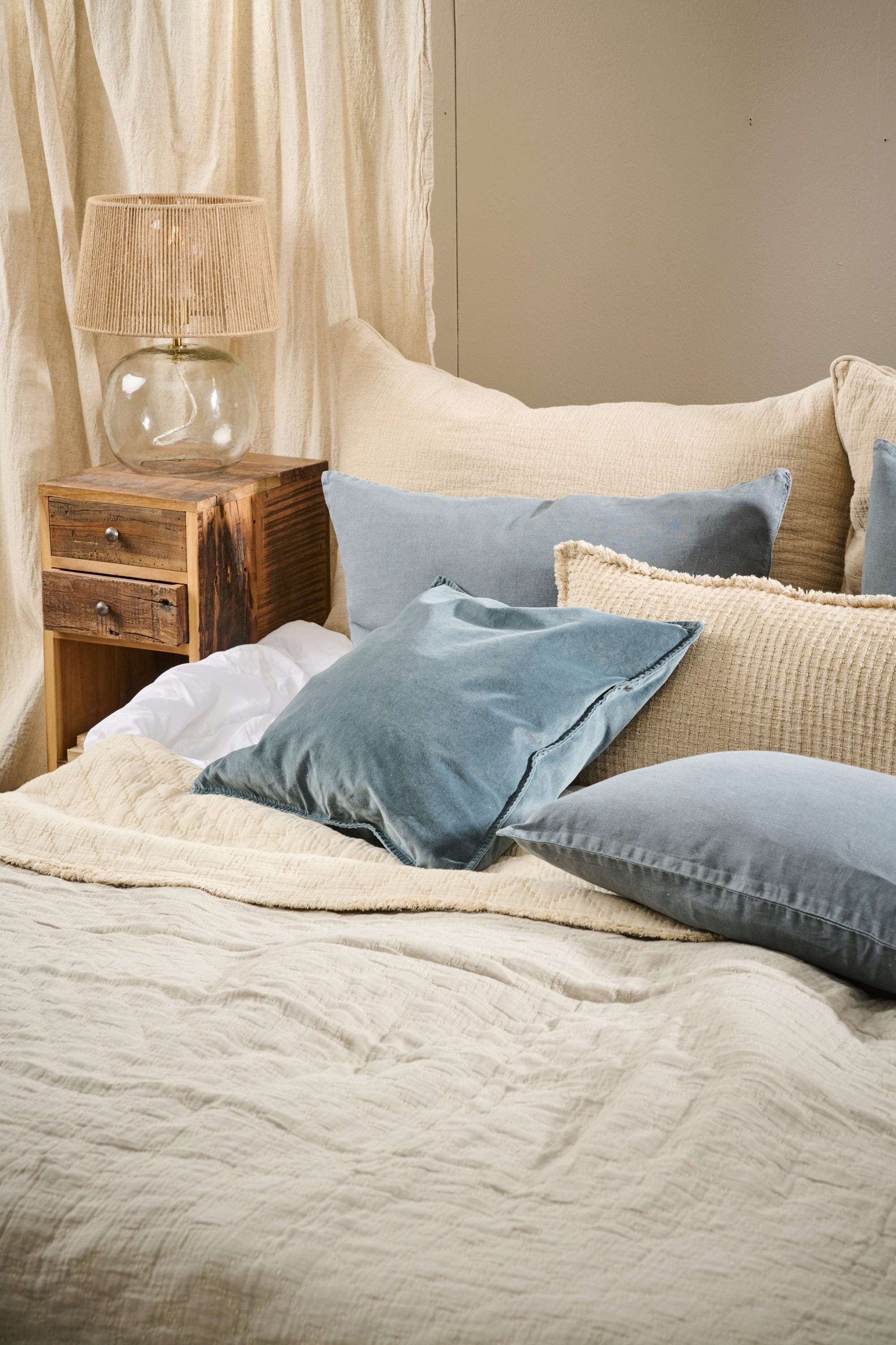 IB Laursen Coperta con Ricamo a Quadri, Azzurro / bianco