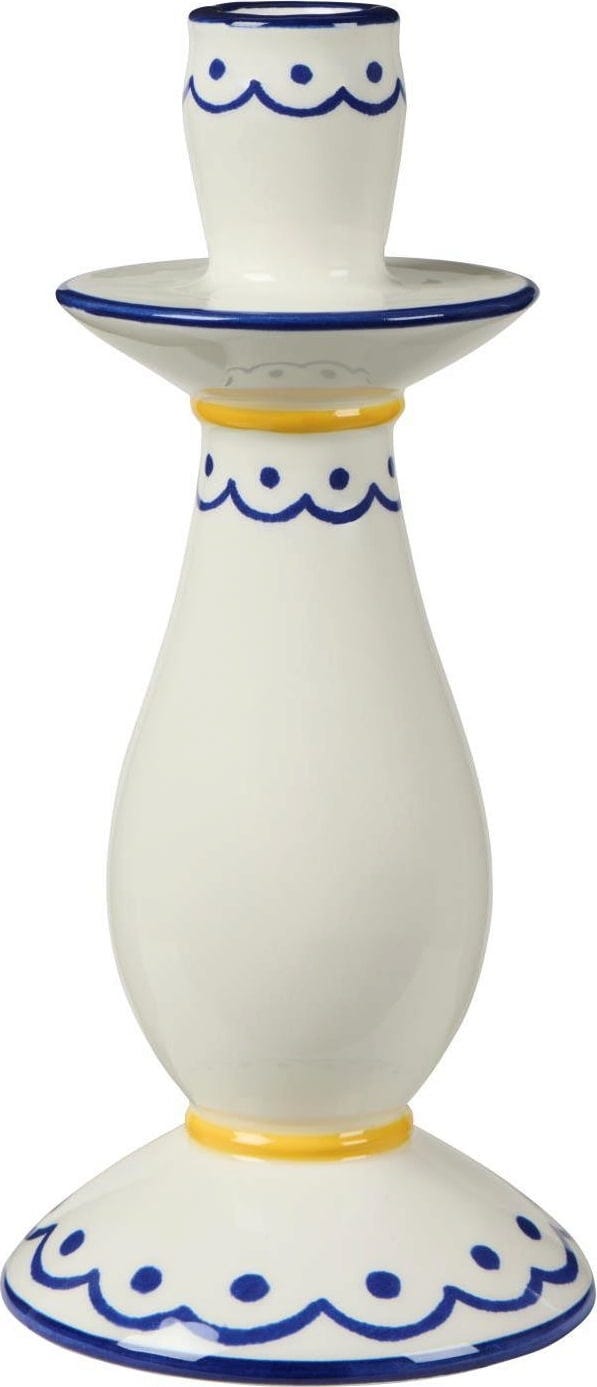 IB Laursen Portacandela Bianco/Blu con Motivo Giallo