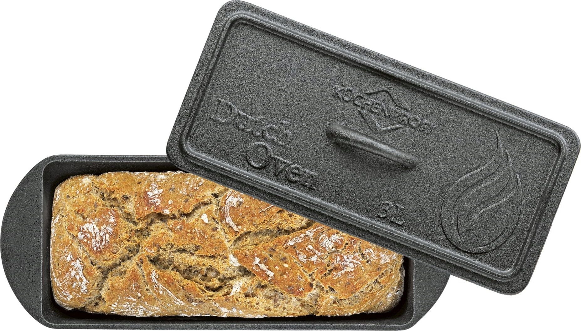 La teglia rettangolare in robusta ghisa con coperchio è ideale non solo per pane e dolci, ma anche per sformati e arrosti cotti direttamente sul grill.