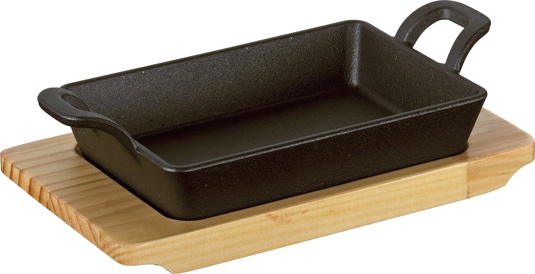 Küchenprofi BBQ - Padella da Servizio Quadrata con Tagliere in Legno