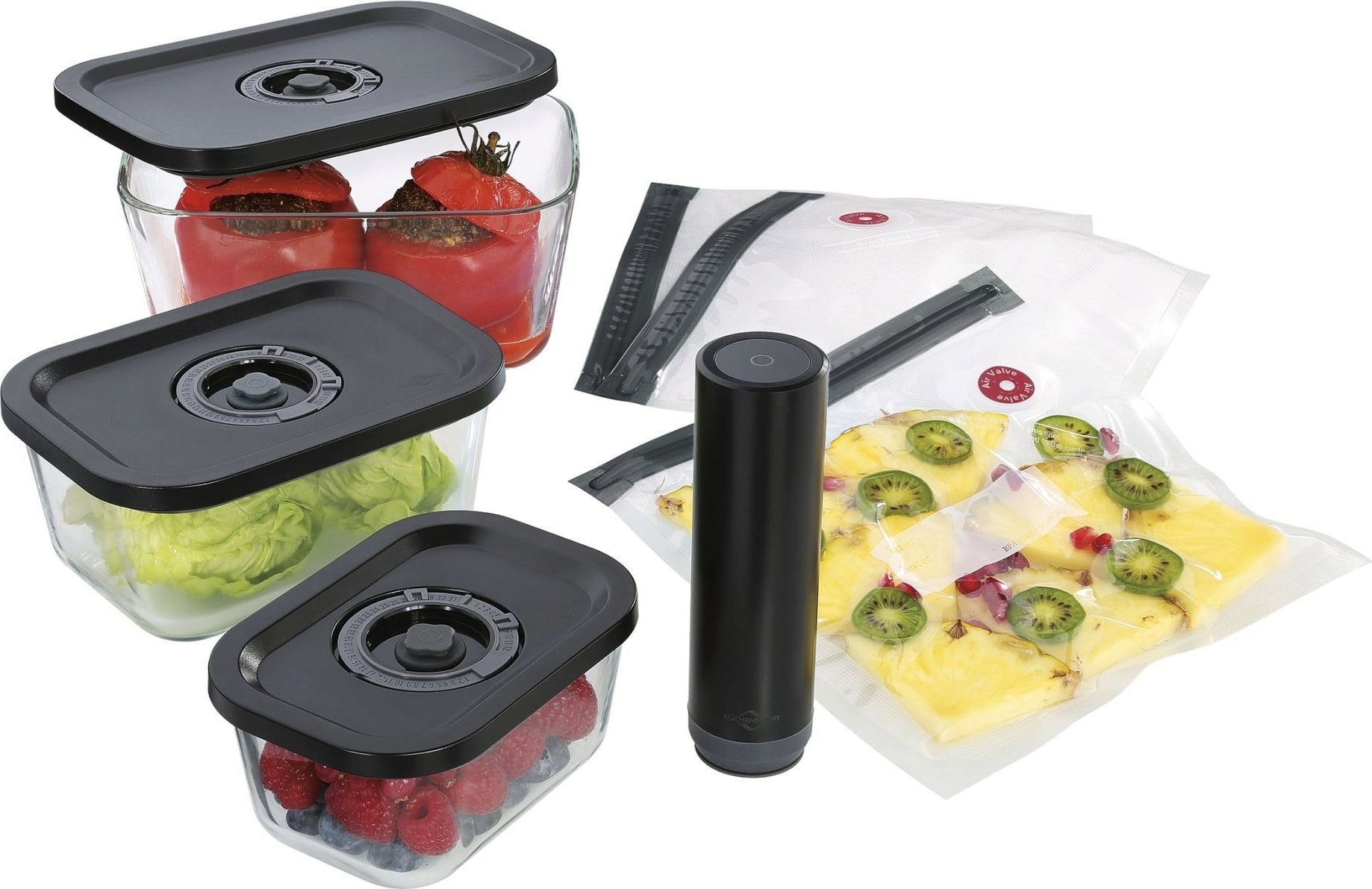 Con il set per sottovuoto EASYFRESH da 7 pezzi di Küchenprofi, preparare, conservare e mantenere freschi gli alimenti diventa semplicissimo.