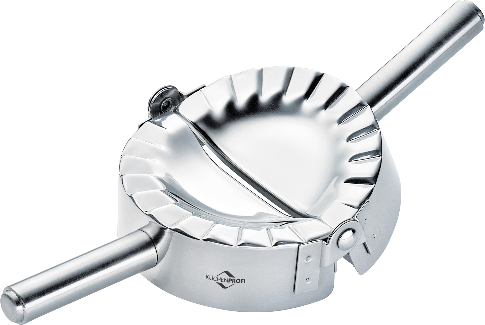 Particolarmente pratico: utilizza il lato esterno per ritagliare l'impasto e quello interno per sigillarlo. Inserire l'impasto con il ripieno nel raviolatore, premere entrambe le estremità, quindi cuocere direttamente in acqua bollente e gustare.
