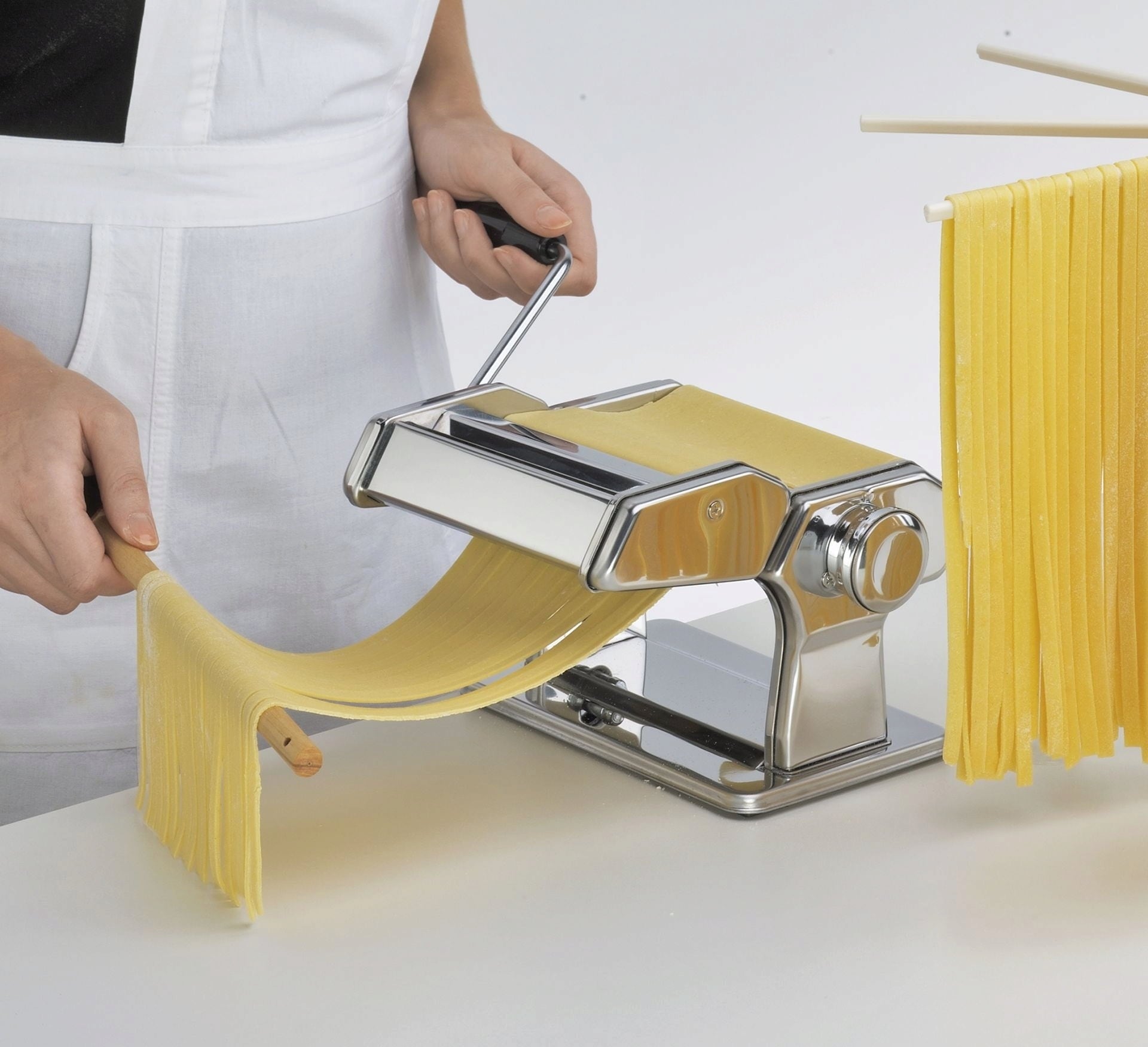 Questo set per pasta di qualità professionale conquista non solo gli amanti della cucina italiana: preparare specialità di pasta non è mai stato così semplice.