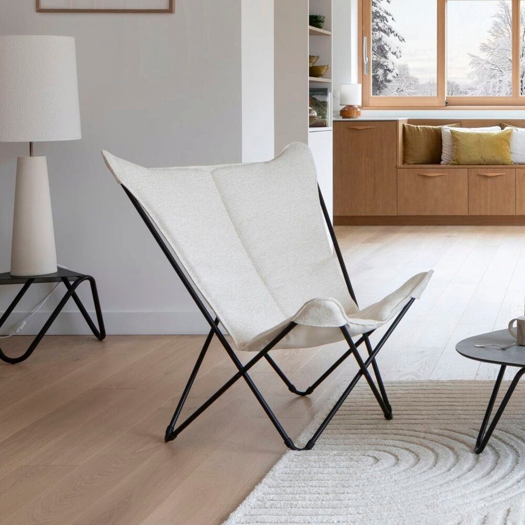 Con la Poltrona Lounge SPHINX Niksen di Lafuma porti nel tuo soggiorno una vera icona di design. La seduta extra ampia abbinata allo schienale alto ti avvolge delicatamente, invitandoti ad abbandonarti al piacere del relax e a goderti appieno il momento presente. Il raffinato tessuto bouclé rappresenta il dettaglio estetico distintivo: morbido, caldo e materico, crea immediatamente un'atmosfera accogliente.