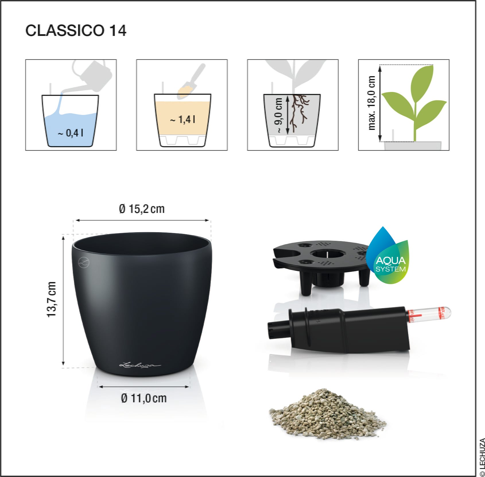 • Substrato vegetale LECHUZA-PON come strato drenante.