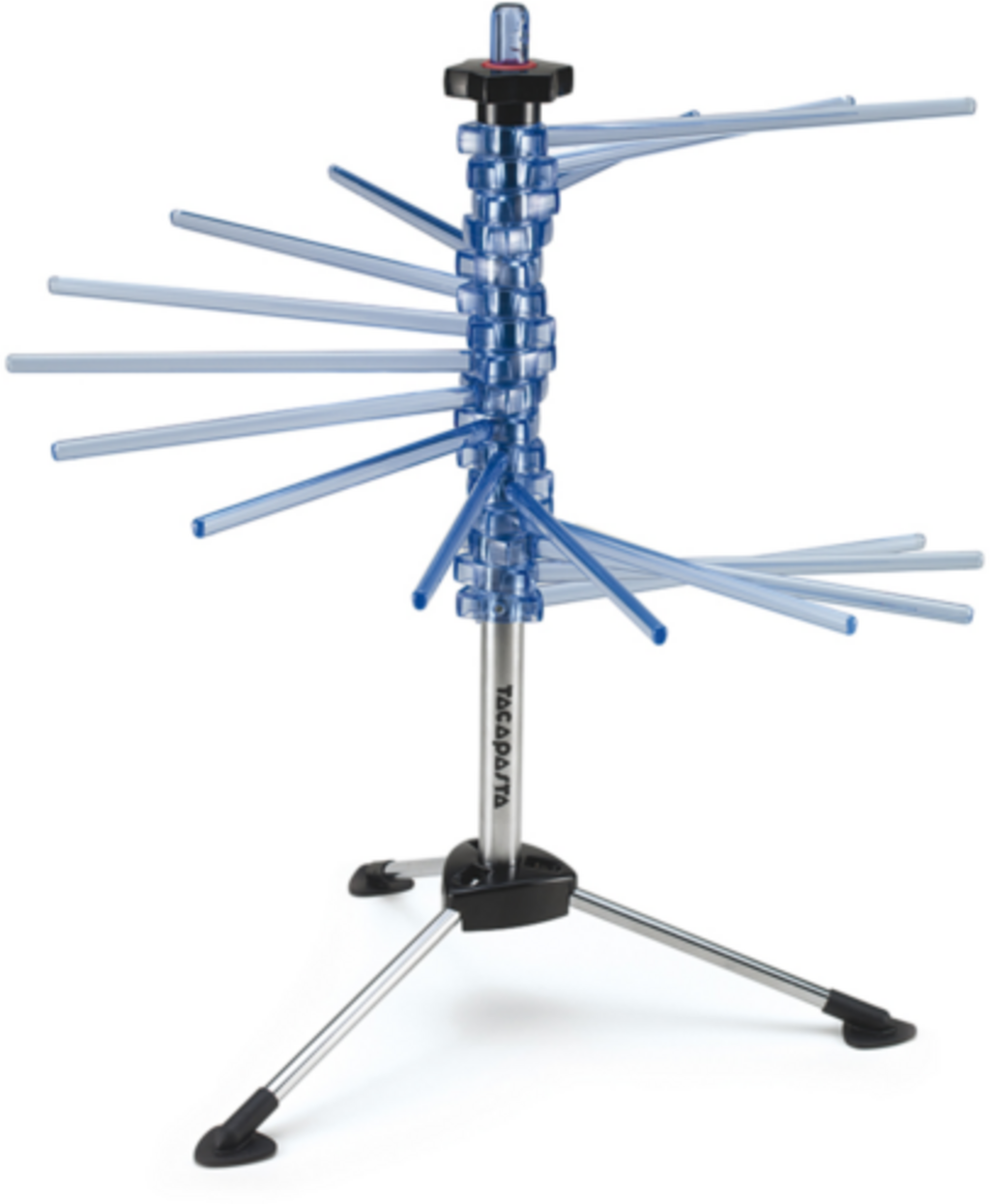 La pasta fatta in casa si mantiene nel tempo solo se asciutta. Tacapasta può essere utilizzato per far asciugare fino a 2 kg di pasta alla volta, grazie ai suoi 16 bracci.