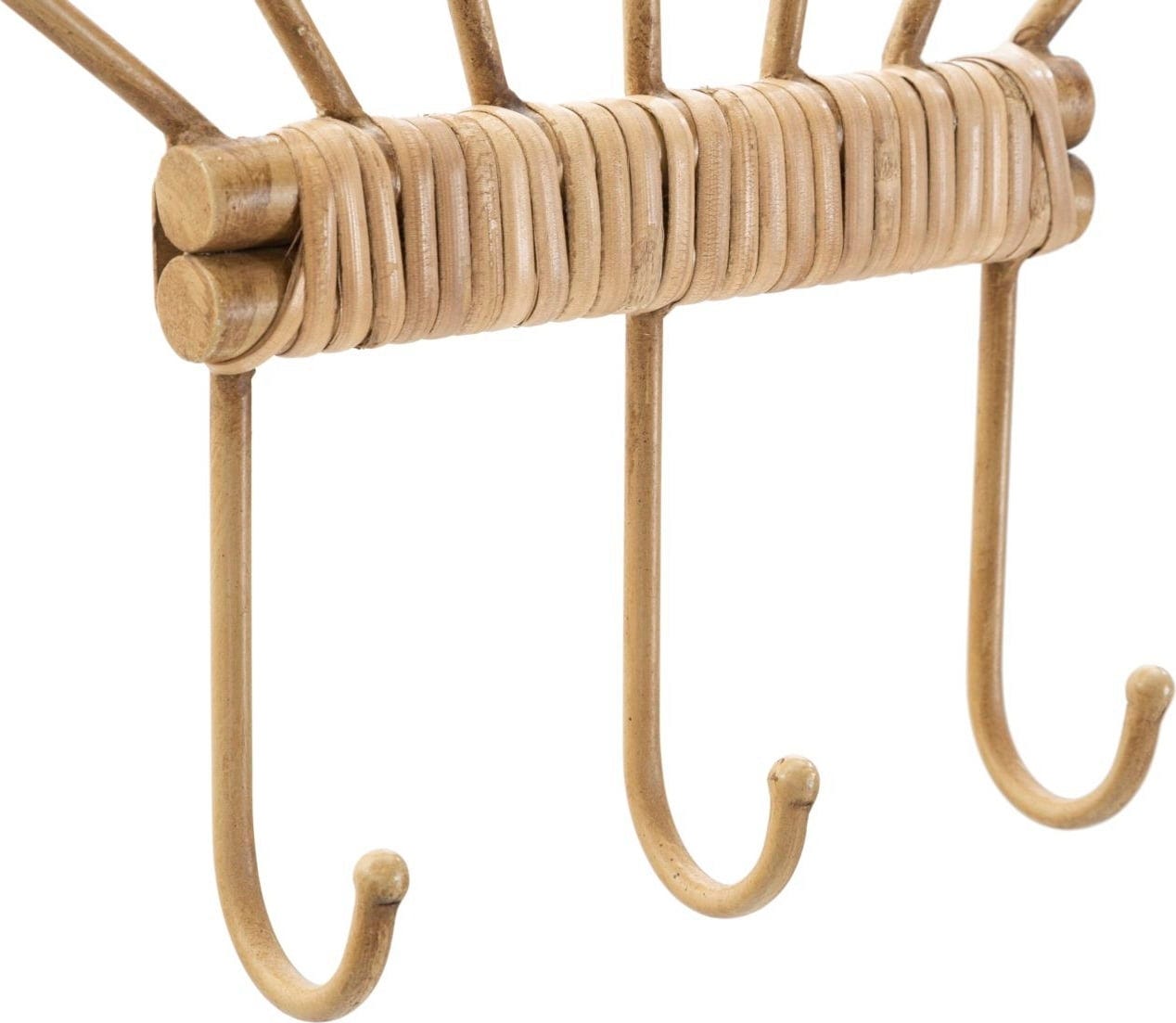 Con l'appendiabiti da parete Panama di Mauro Ferretti porti in ingresso un tocco esotico, insieme a tanta praticità. Il design, che ricorda un ventaglio delicatamente aperto, rende questo pezzo molto più di un semplice accessorio: è un vero statement per la parete. Realizzato in metallo robusto, si distingue per la finitura sorprendentemente realistica effetto rattan, dal caldo colore naturale che richiama il bambù e crea subito un'atmosfera accogliente.