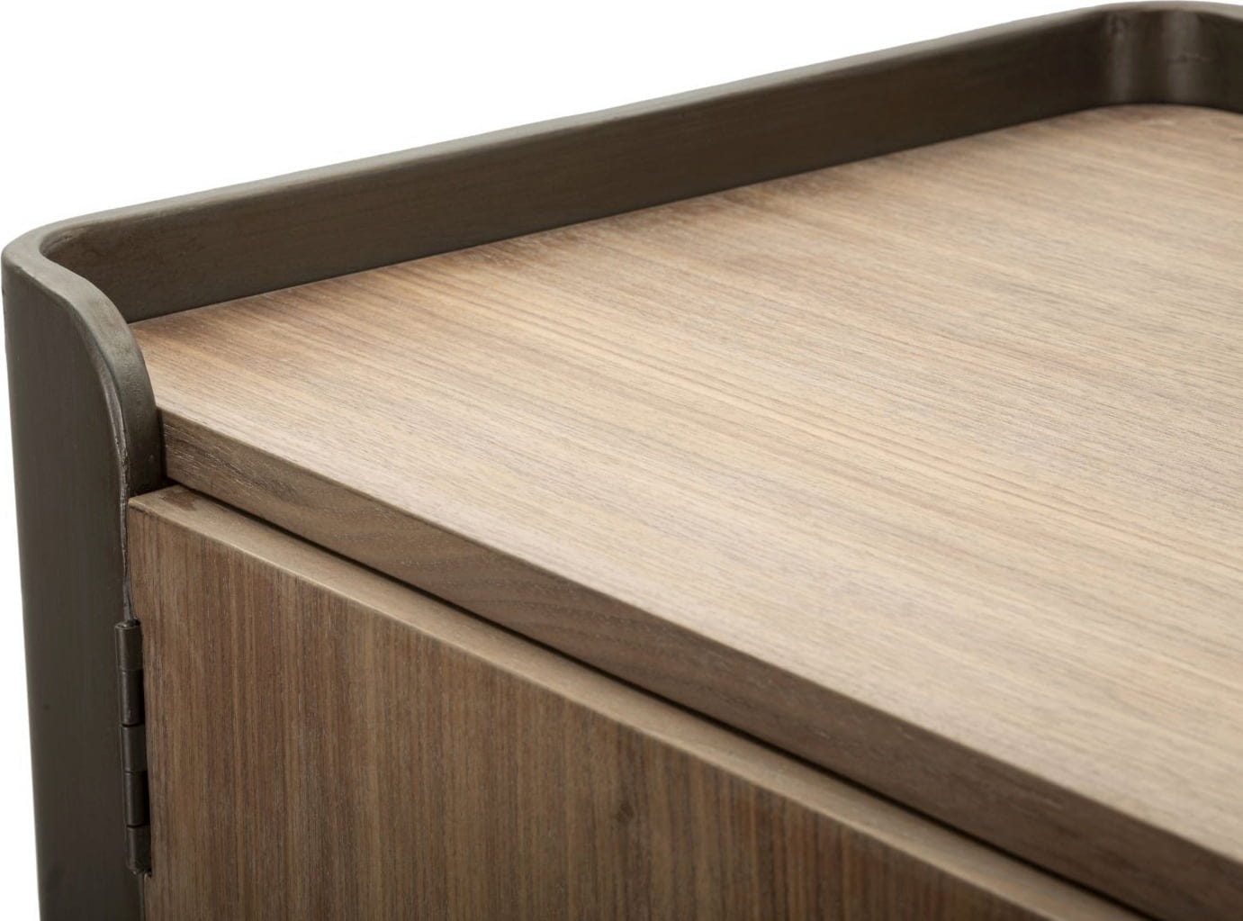 Arricchisci il tuo arredamento con un mobile che unisce design moderno e funzionalità elevata. Questo armadio si distingue per le sue linee pulite e decise e per l’affascinante contrasto tra il metallo robusto e la calda finitura effetto legno. Il vano principale, chiuso da due ante, offre uno spazio contenitivo discreto e ordinato.