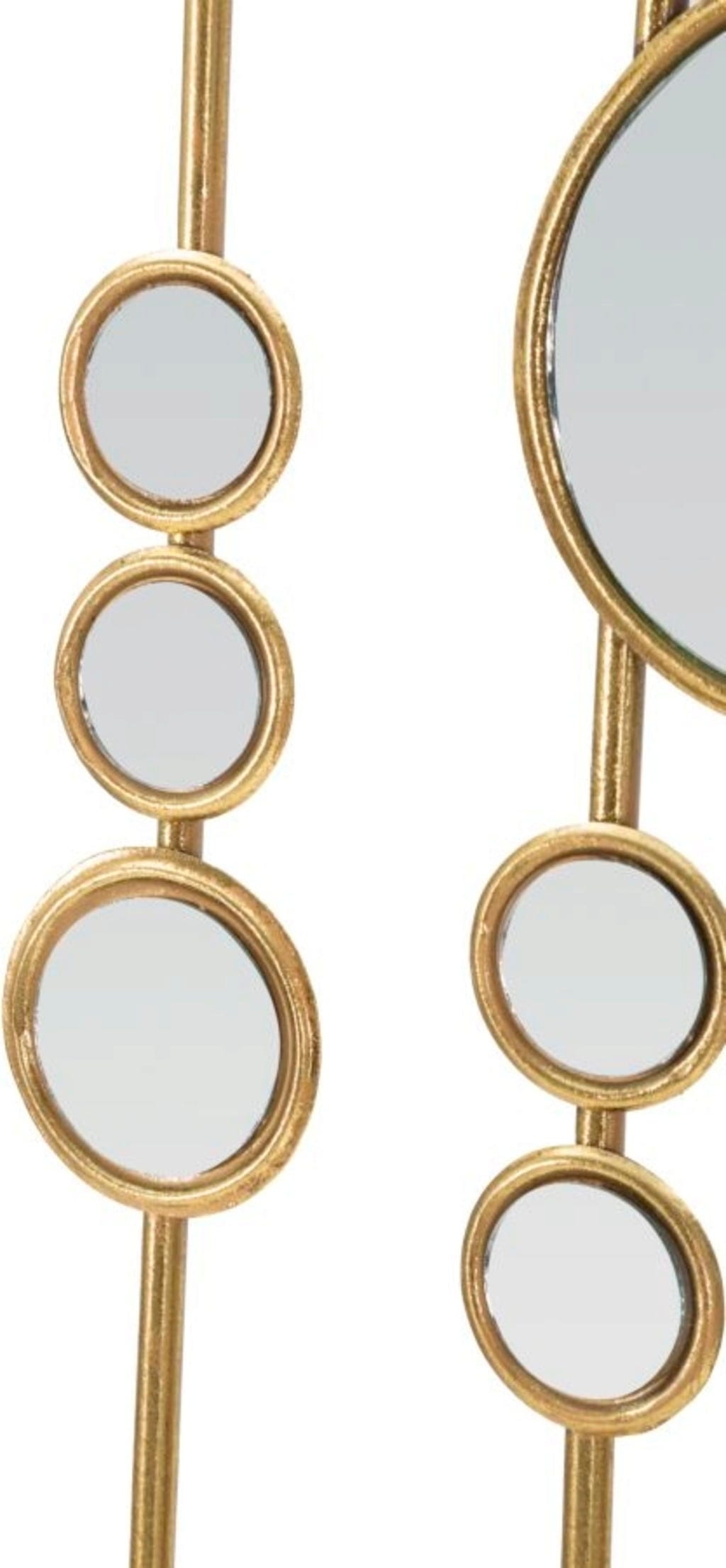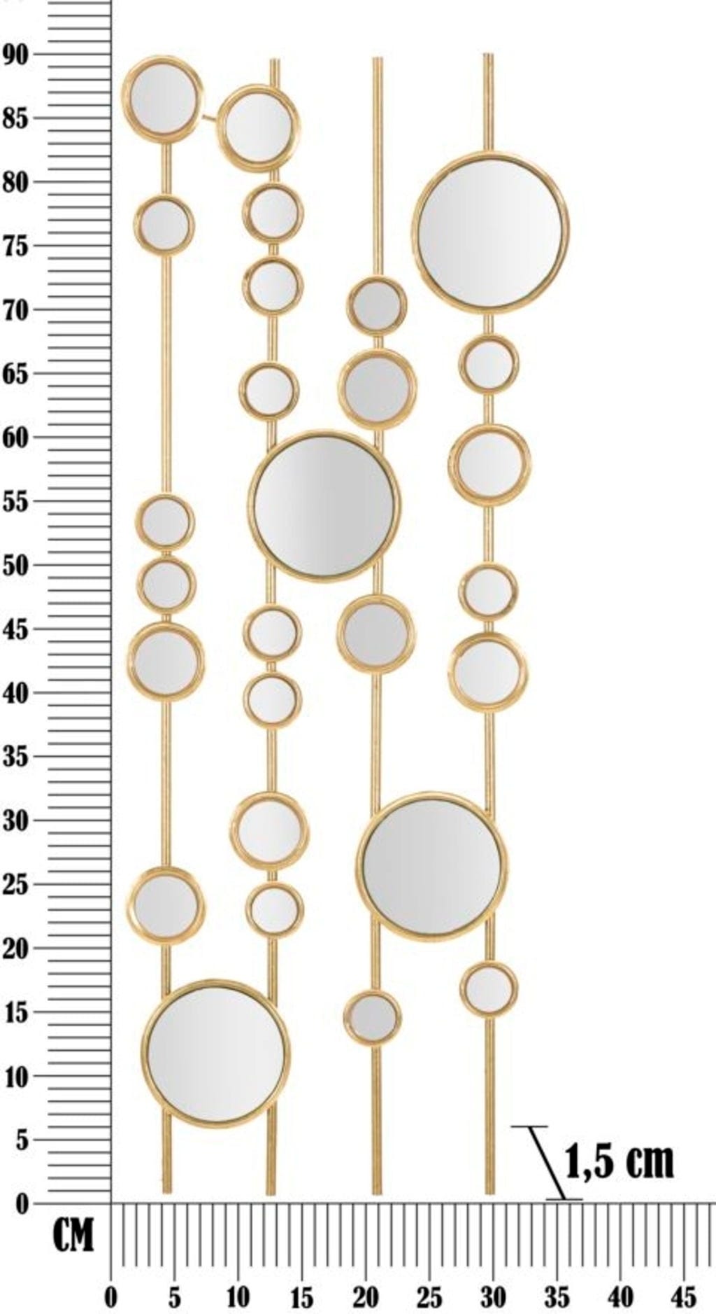Trasforma la parete in un'opera scintillante con la decorazione da parete Small Mirrors di Mauro Ferretti. Questa decorazione 3D dorata conquista con un design moderno e geometrico, in cui numerosi specchi rotondi di diverse dimensioni sono disposti su sottili aste metalliche verticali.