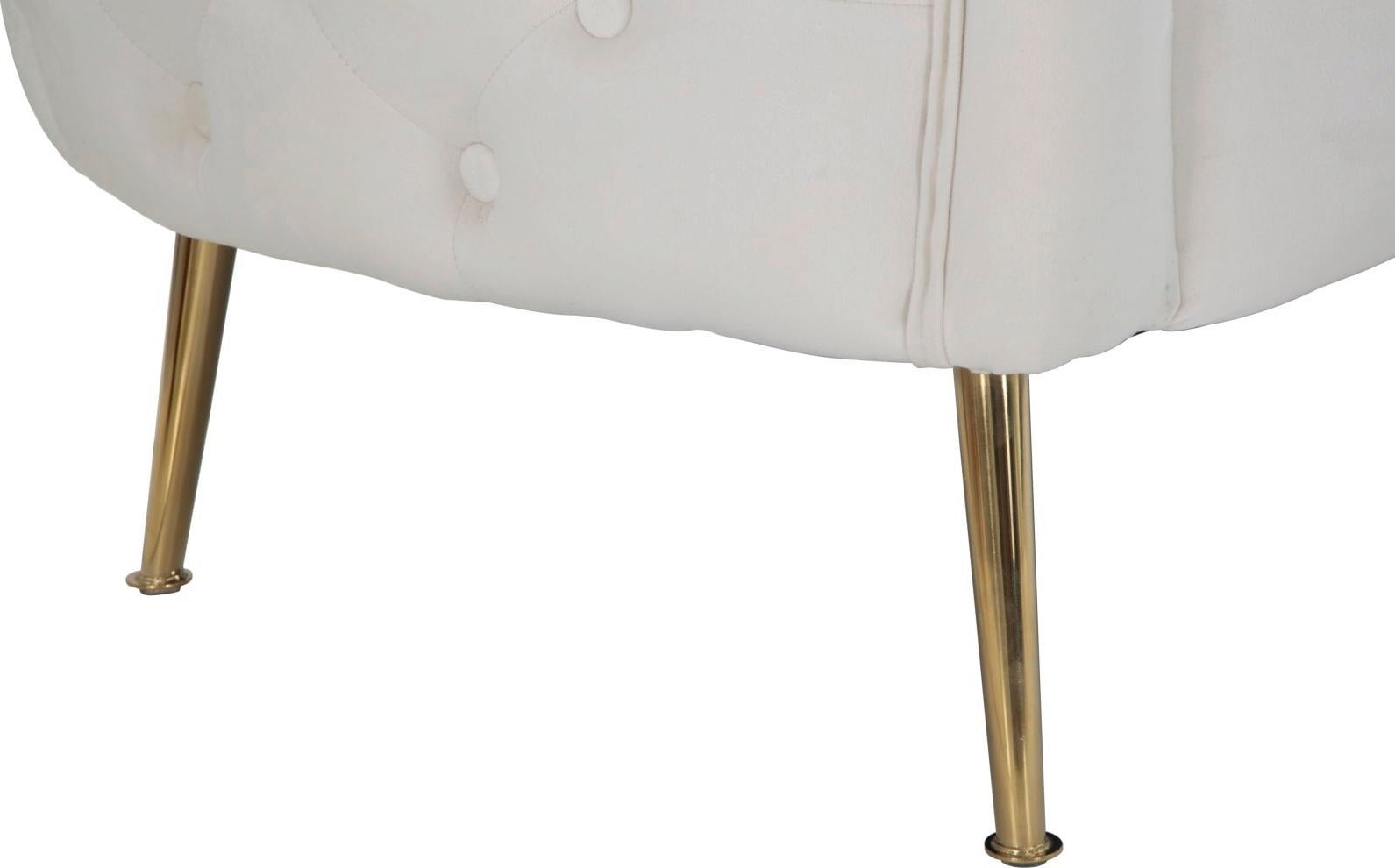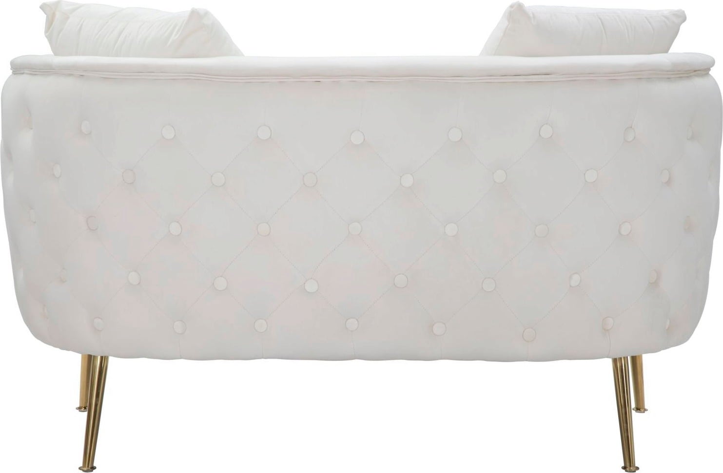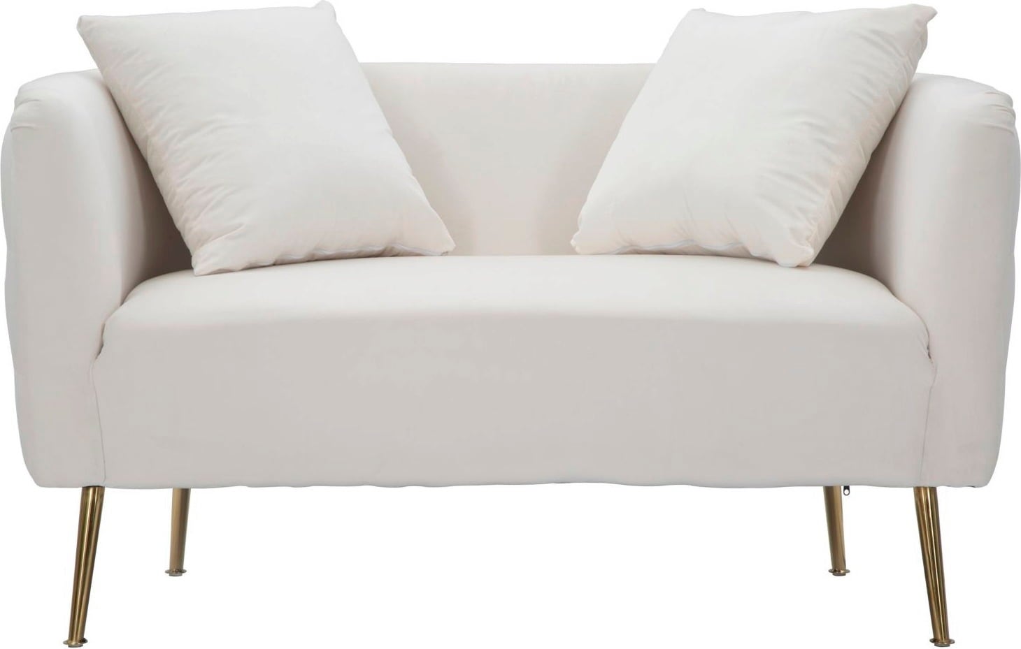 Le gambe in metallo dorato creano un elegante contrasto con il tessuto, dando vita a un connubio di velluto e oro dal carattere unico. Due cuscini coordinati sono inclusi per completare comfort ed estetica.