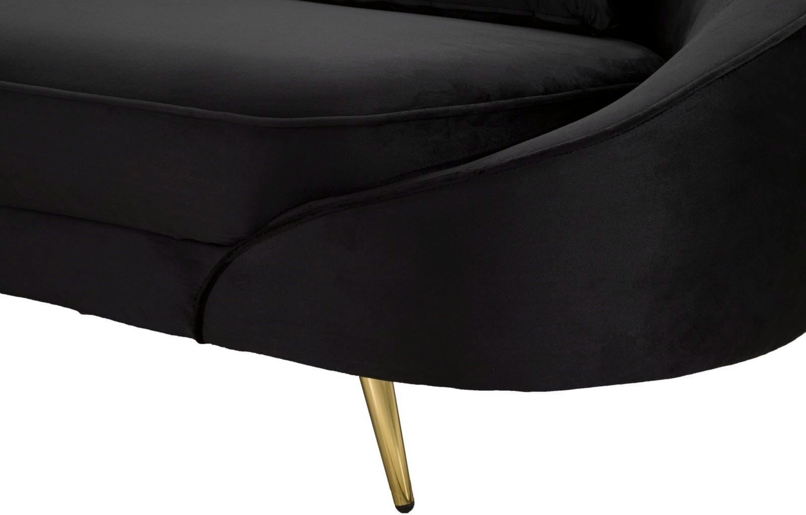 Trasforma il tuo soggiorno in un’oasi di glamour moderno con questo elegante divano a tre posti. Il lussuoso rivestimento nero effetto velluto e le linee morbide e accoglienti della forma curva e asimmetrica creano un punto focale di grande impatto visivo.
