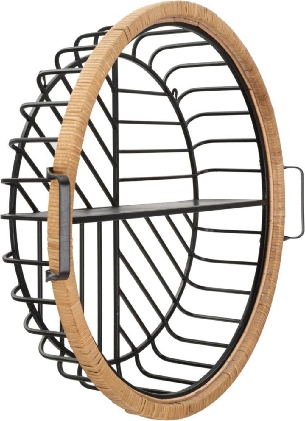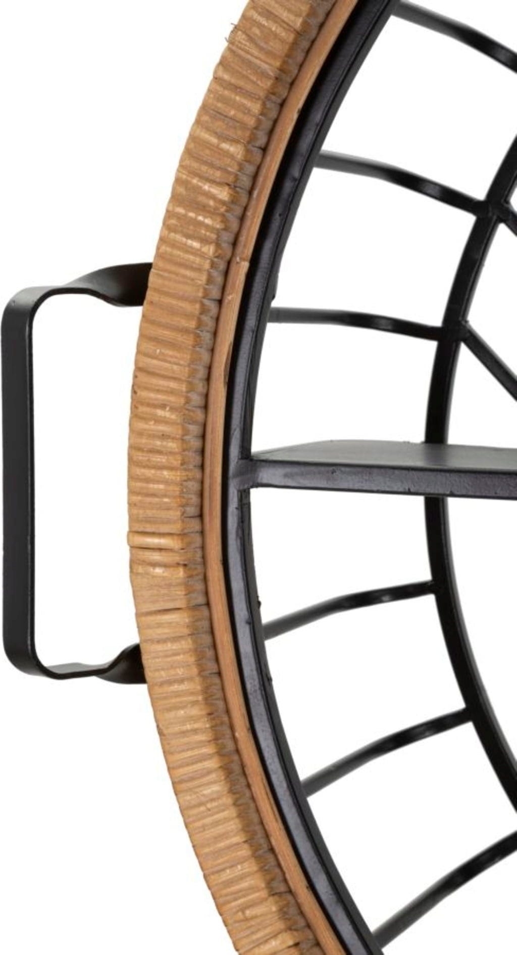 Crea un vero statement di stile con la mensola da parete Cebu di Mauro Ferretti. Questa mensola rotonda in metallo nero si distingue per la cornice intrecciata in rattan, che dona all'insieme una calda nota naturale.