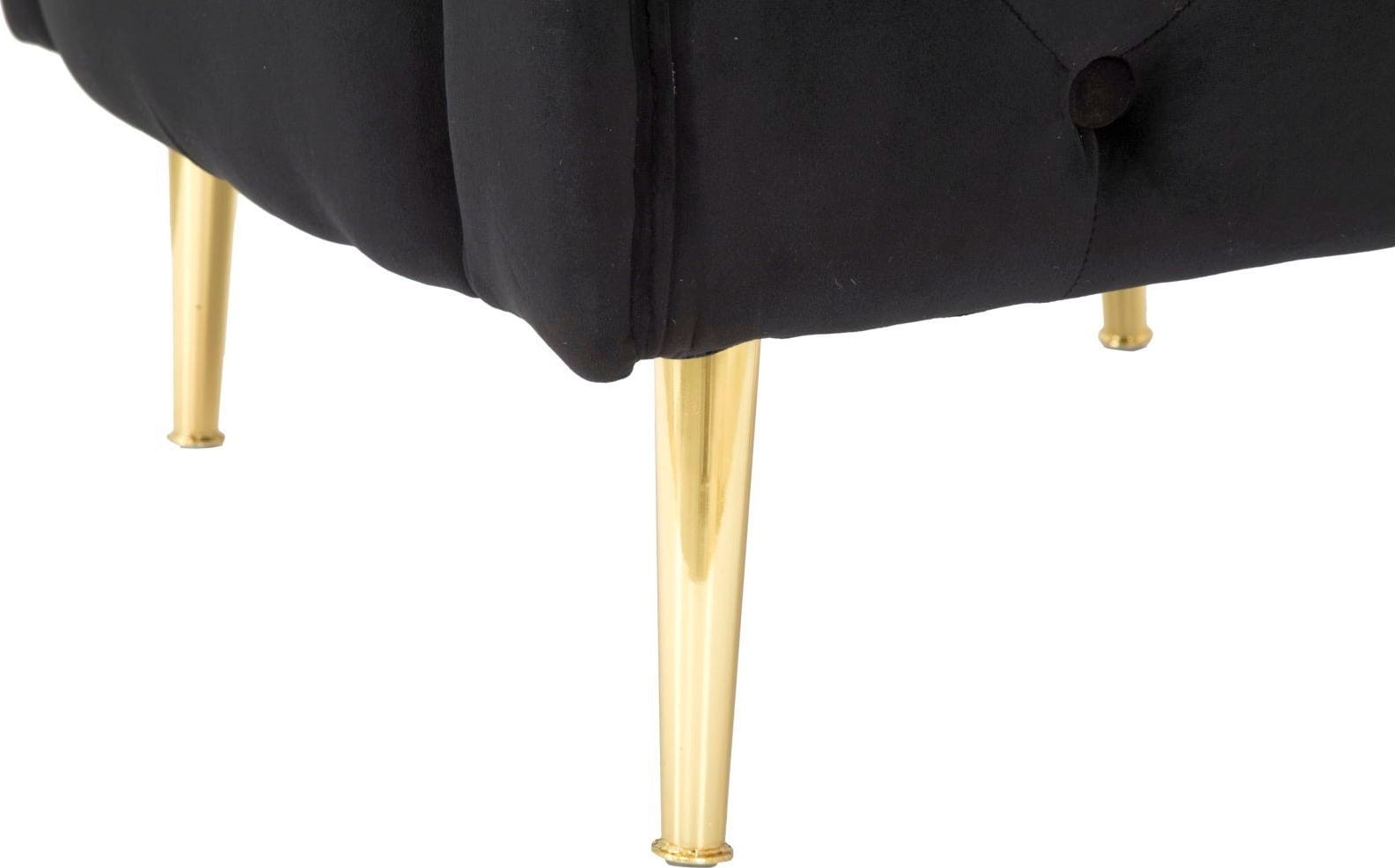 L’eleganza della poltrona è valorizzata dalle sottili gambe in metallo dorato, che creano un raffinato contrasto glamour con la tonalità scura del rivestimento. Un cuscino coordinato per lo schienale è incluso. Perfetta come punto focale in soggiorno o per rendere ancora più accogliente l’angolo lettura.
