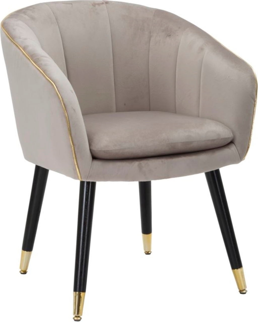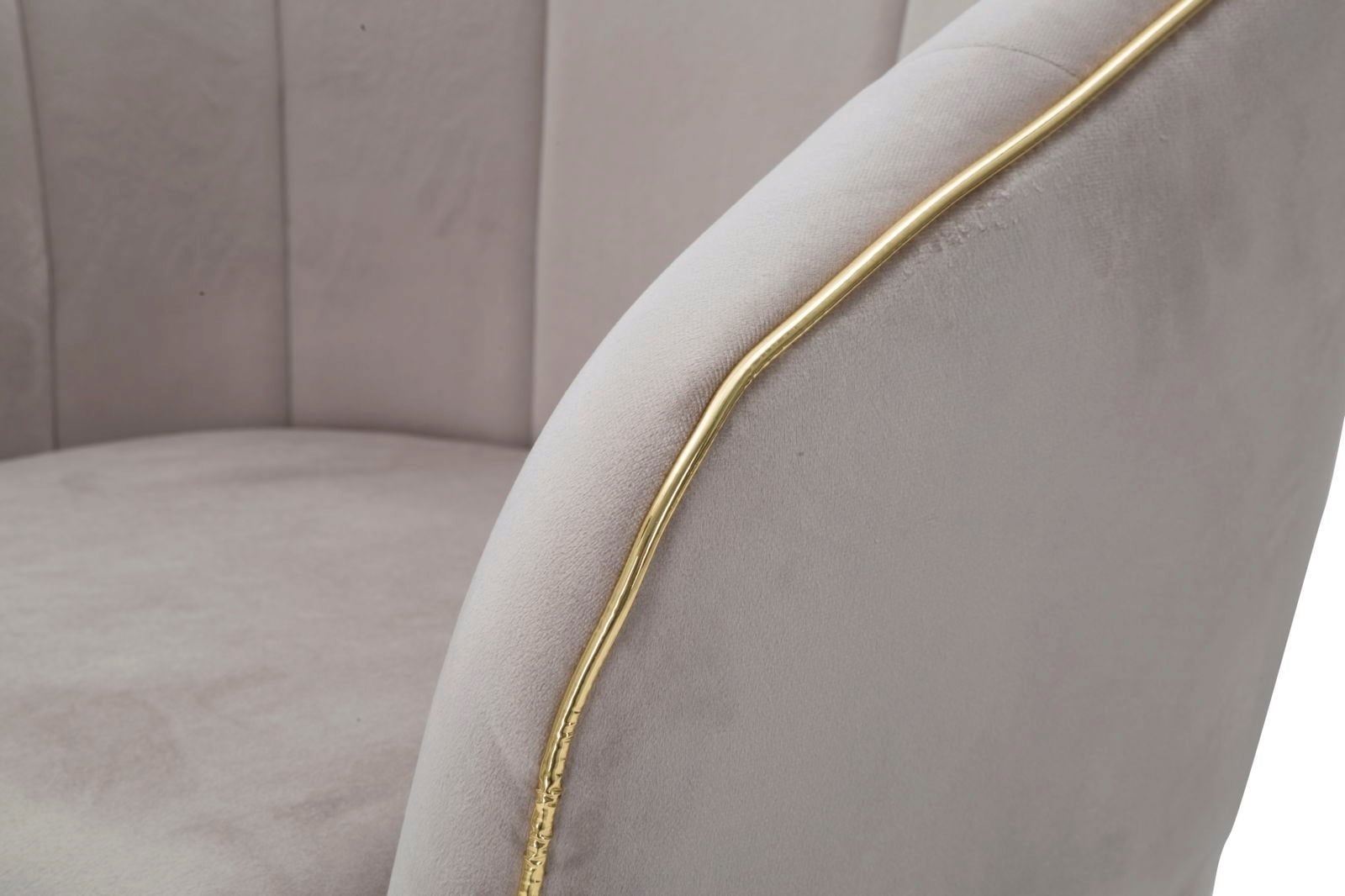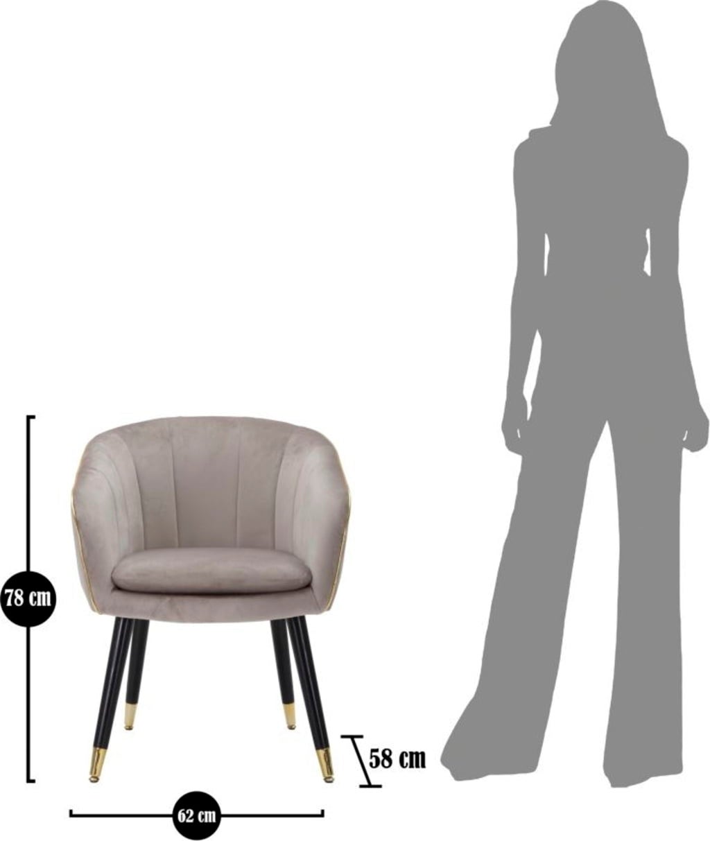 Dona al tuo ambiente un tocco di classe e un comfort rilassante con questa elegante poltroncina. È rivestita in un morbido tessuto imbottito in una raffinata tonalità grigia. La forma armoniosa è valorizzata da un profilo in passamaneria dorata lucida, che aggiunge un accento lussuoso.