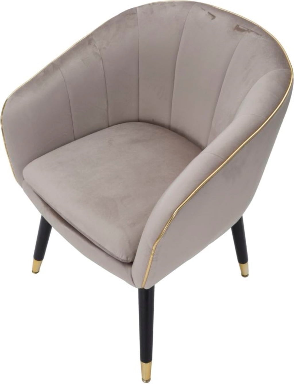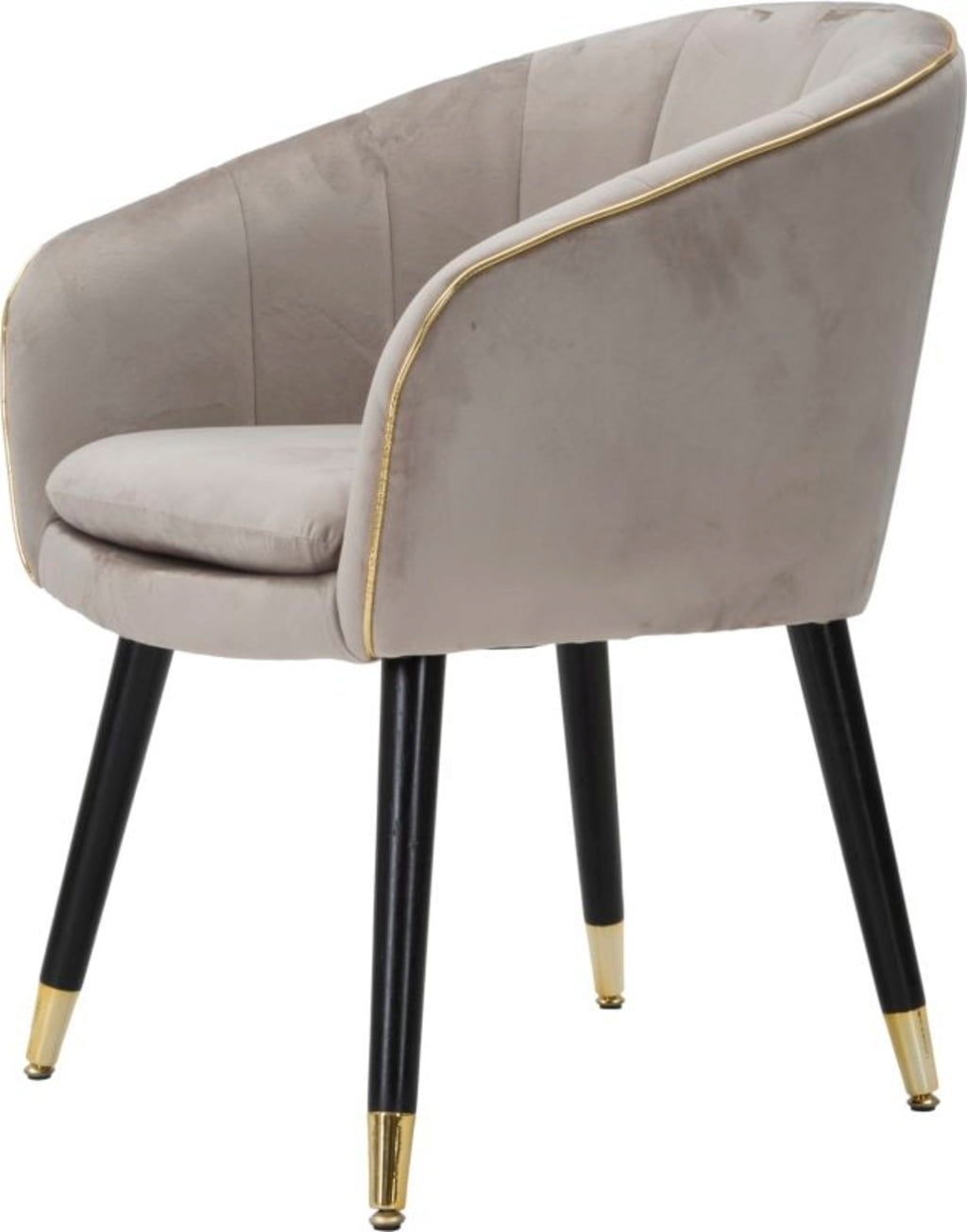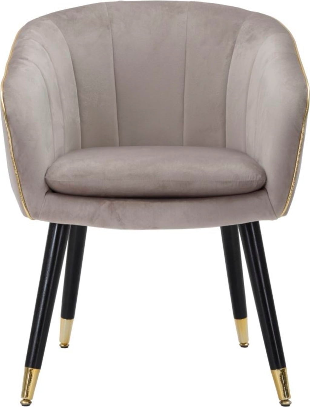 Dona al tuo ambiente un tocco di classe e un comfort rilassante con questa elegante poltroncina. È rivestita in un morbido tessuto imbottito in una raffinata tonalità grigia. La forma armoniosa è valorizzata da un profilo in passamaneria dorata lucida, che aggiunge un accento lussuoso.