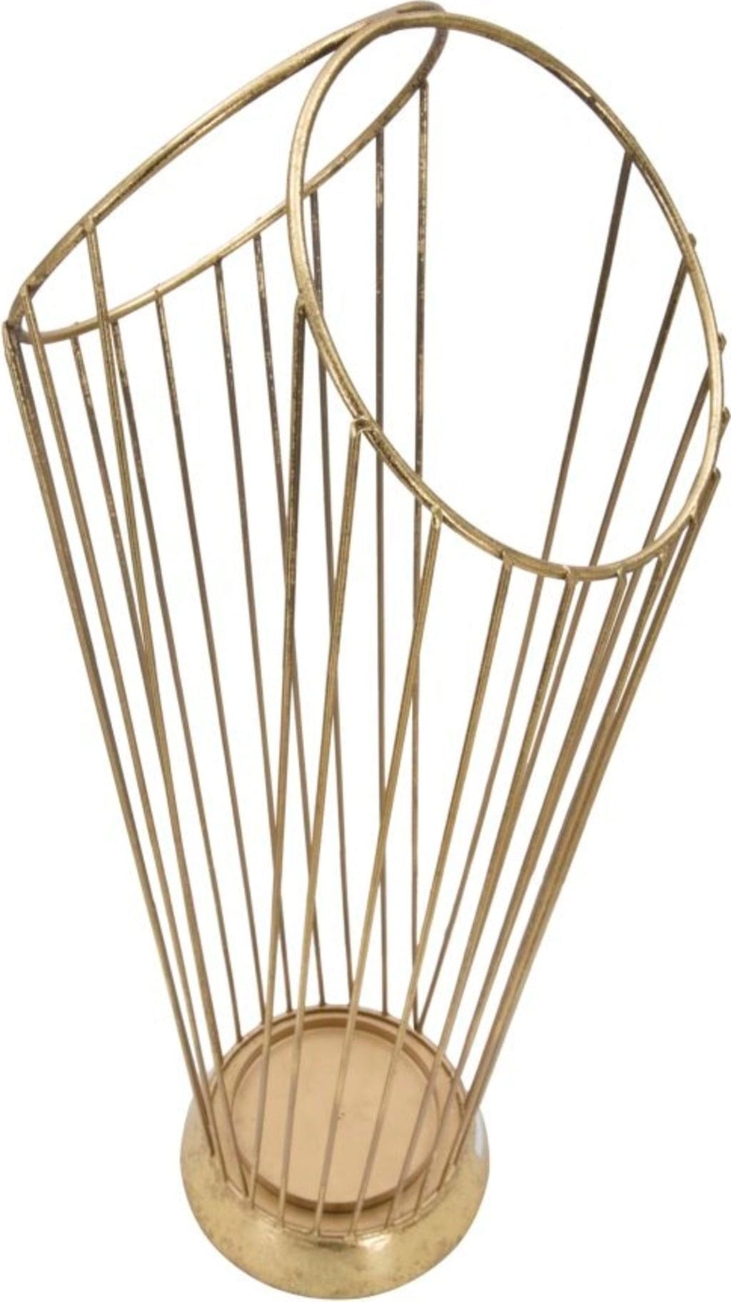 I sottili elementi metallici disposti a ventaglio donano all'oggetto una leggerezza scultorea e una forma dinamica. Non è solo un pratico complemento per tenere in ordine gli ombrelli, ma un dettaglio capace di impreziosire anche l'angolo più nascosto della casa. La base solida e rotonda garantisce stabilità e raccoglie efficacemente l'acqua.